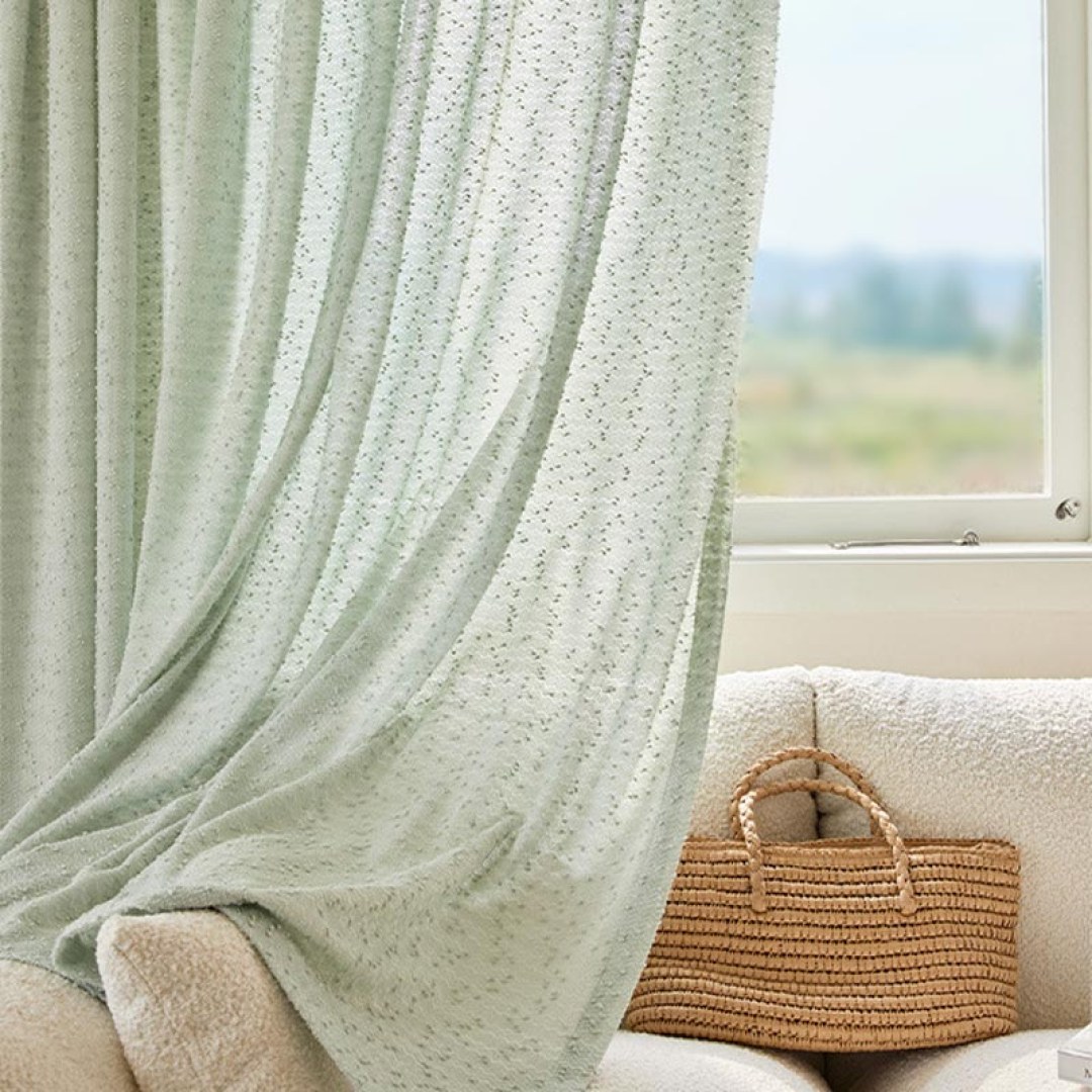 Wir präsentieren unsere exquisiten Voile-Vorhänge, bei denen Qualität, Handwerkskunst und Eleganz im Mittelpunkt stehen. Der Stoff zeichnet sich durch eine designerinspirierte Tweed-Textur aus, die durch kleine, dezente Flecken und Sprenkel sowie schimmernde Details gekennzeichnet ist und einen opulenten Fall sowie einen frischen und eleganten Stil verkörpert.
