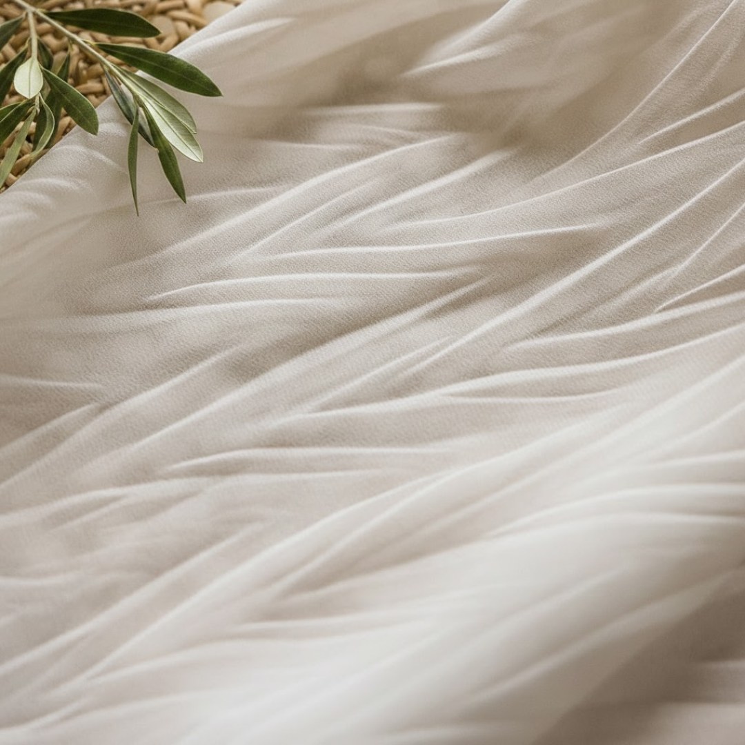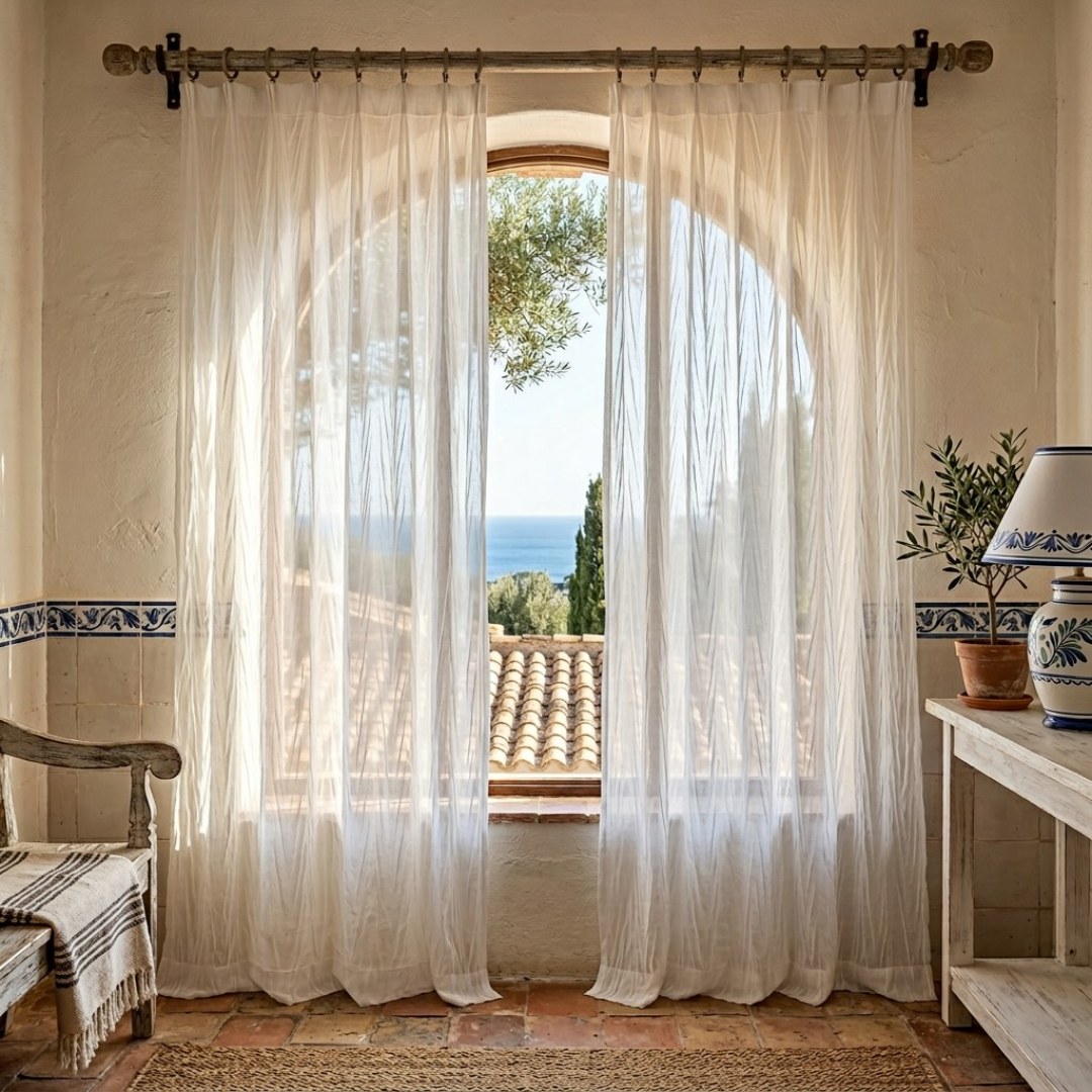 Dieser zerknüllte, wellige Voilvorhang in Elfenbeinweiß verleiht jedem Innenraum zeitgenössische Eleganz. Seine weiche Textur und der subtile Welleneffekt schaffen eine helle, luftige Atmosphäre und filtern das natürliche Licht sanft. Vielseitig einsetzbar und raffiniert wirkt er harmonisch mit einer Vielzahl von Einrichtungsstilen – vom Boho- und Skandinavischen Stil über Shabby Chic, Landhausstil bis hin zum mediterranen Look – und fügt dem Raum unaufdringlichen Charme sowie feine Weichheit hinzu. Unsere maßgeschneiderten Vorhänge werden sorgfältig nach Ihren individuellen Wünschen gefertigt. Sie stehen in verschiedenen Kopfformen zur Auswahl, darunter Bleistiftfalz, Ösen, Kornfalz, Taille-Falz, Invertierter Boxfalz, Schlaufenoberteil, Rückenschlaufe, Stangenhülse sowie Wellenvorhang. Entdecken Sie, wie gekrümmte Voilvorhänge jeden Raum neu gestalten können.