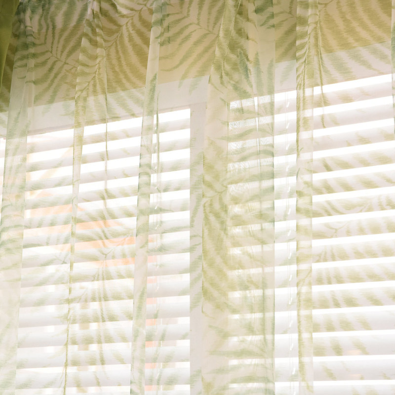 Dieser hübsche Voilevorhang präsentiert 'Palm Tree Leaves' und bringt tropische Frische in Ihr Zuhause. Er lässt sich gut mit den passenden Gardinen kombinieren, um eine beeindruckende Aussicht optimal zur Geltung zu bringen. Unsere maßgefertigten Voilevorhänge werden sorgfältig nach Ihren individuellen Wünschen gefertigt. Sie sind in verschiedenen Aufhängungsarten erhältlich, um Ihrem Geschmack gerecht zu werden, darunter Schlaufenschlauch, Ösen, Plisseeklappen, Wellenschlauch, umgekehrte Schlaufe, Schlaufenband, Rückenschlaufen, Stangenschlauch und Wave-Vorhang. Bestellen Sie passende Gardinen, Raffbänder und Kissen, um das gesamte Raumambiente zu veredeln. Entdecken Sie, wie tropische Voilevorhänge jeden Raum aufwerten. * Layern Sie Ihr Fenster mit Voilevorhängen und Stoffvorhängen im gleichen Muster. So entsteht etwas Persönliches und Einzigartiges.