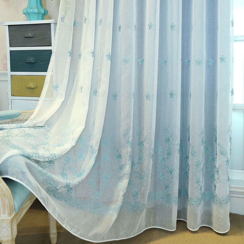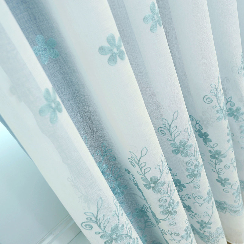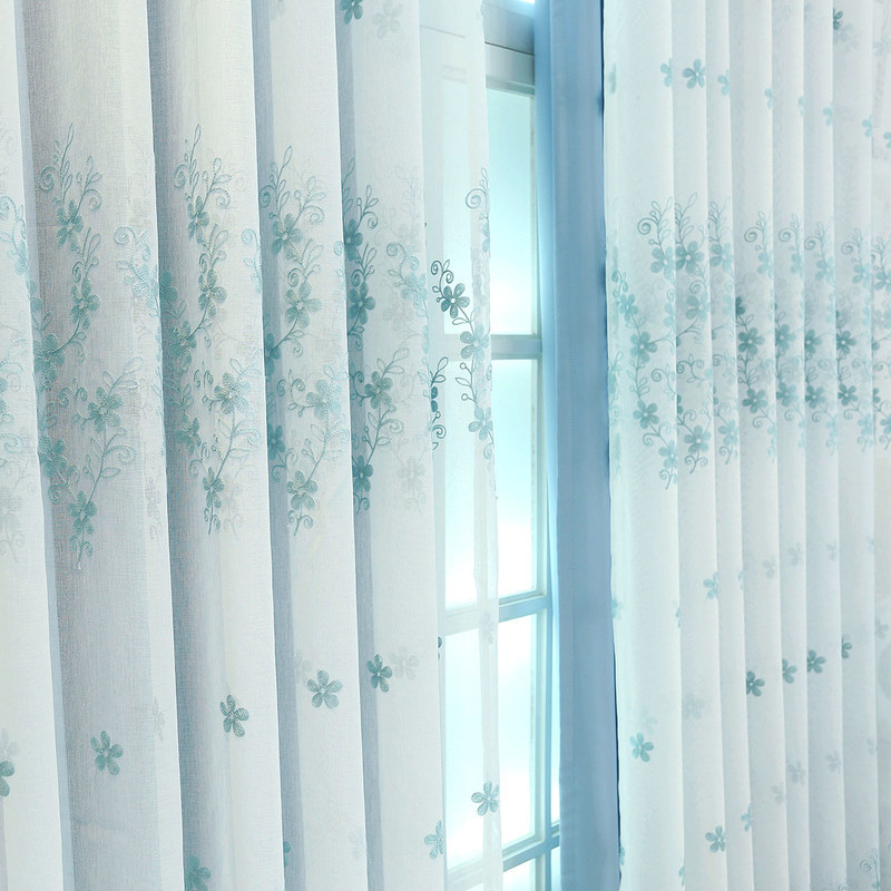 Die blauen, gefütterten Voile-Vorhänge bieten Privatsphäre und verleihen einen luxuriösen Look und Wärme. Mit wunderschönen, blauen, bestickten Blumen und einer verträumten Atmosphäre werden diese charmanten, gefütterten Voile-Vorhänge sicher Ihr Herz erobern.