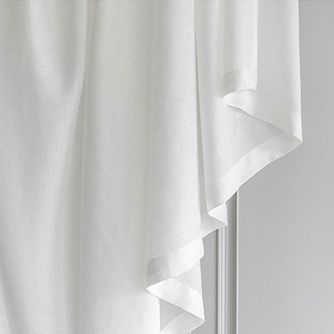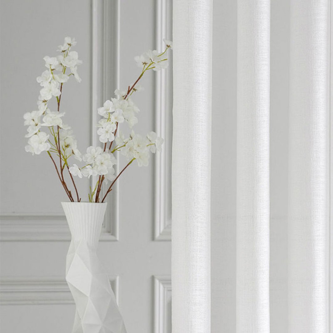 Frisch, sauber, hell und luftig – die wunderschönen weißen Voile-Vorhänge mit Leinenstruktur helfen Ihnen, die Dinge positiv zu sehen. Reichlich natürliches Licht scheint durch diese schweren Voile-Vorhänge, was sie perfekt für Französische Fenster und Schiebetüren macht. Unsere maßgefertigten Vorhänge werden sorgfältig nach Ihren spezifischen Wünschen gefertigt. Sie sind in einer Vielzahl von Kopfformen erhältlich, die Ihrem Geschmack entsprechen, darunter Schlaufenschlauch, Ösen, Zwickfalten, Gepließte Falten, umgekehrte Kastenfalten, Schlaufen, Rückenschlaufen, Stangentasche und Wellenfaltenvorhang. Entdecken Sie, wie schwere Voile-Vorhänge jeden Raum aufwerten können.