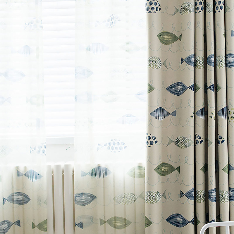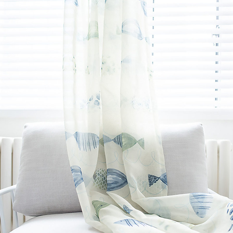 Erinnern Sie sich? Sie sagten, Sie wünschen sich ein Zimmer mit Meerblick. Jetzt bekommen Sie den ganzen Ozean. Die brillanten grünen Fischdruck-Voile-Vorhänge verstärken eine erholsame Atmosphäre.