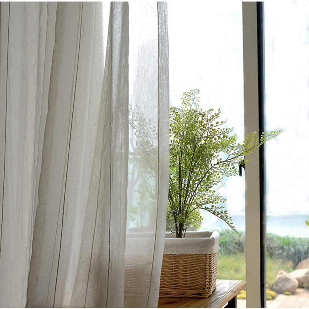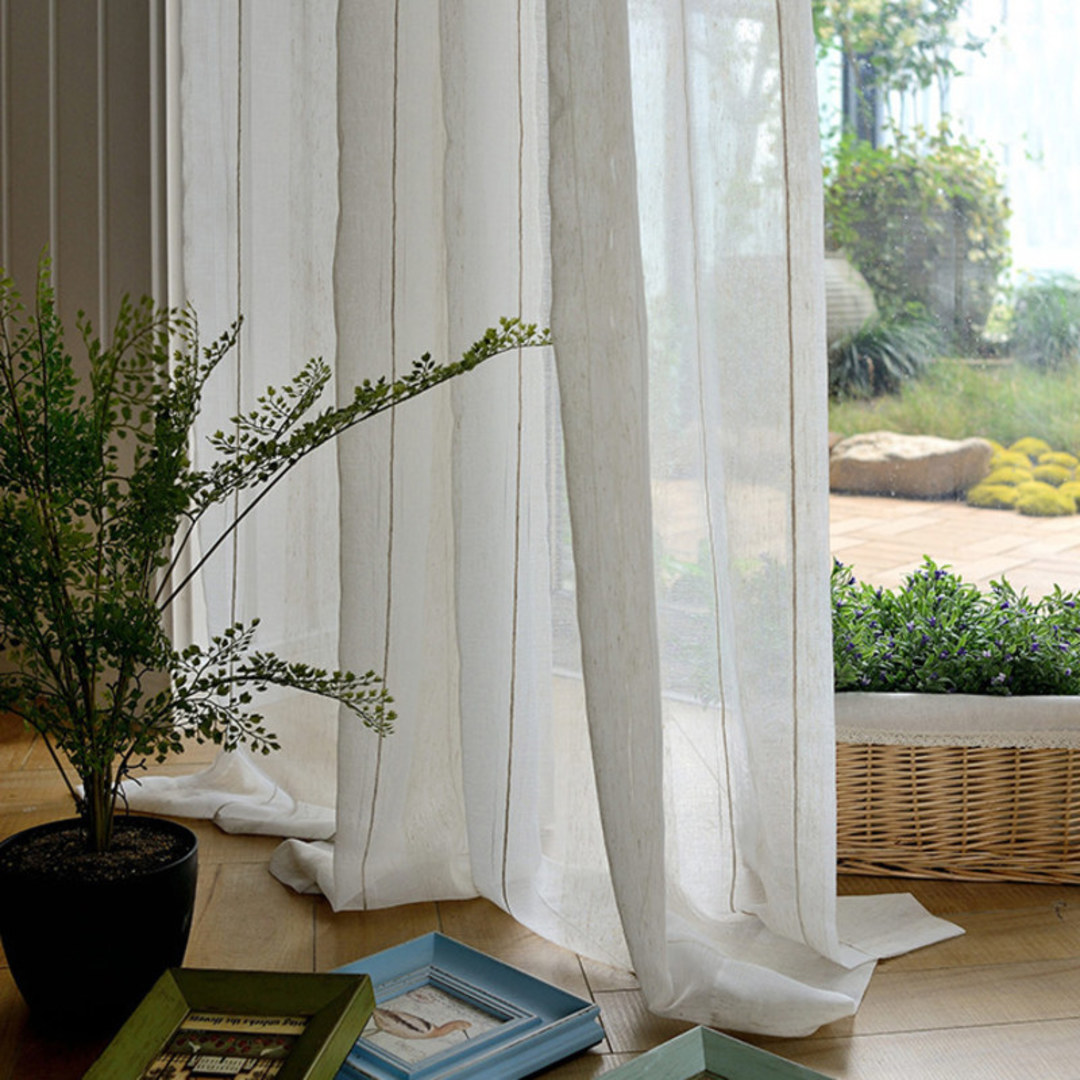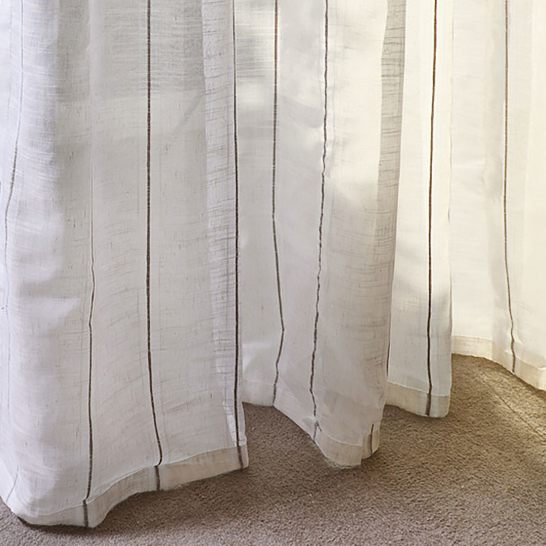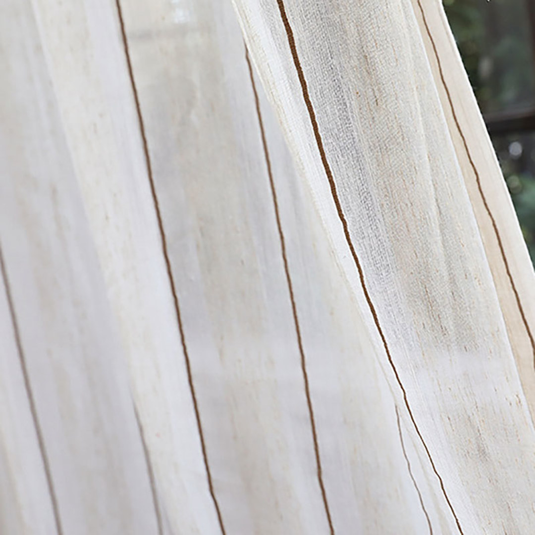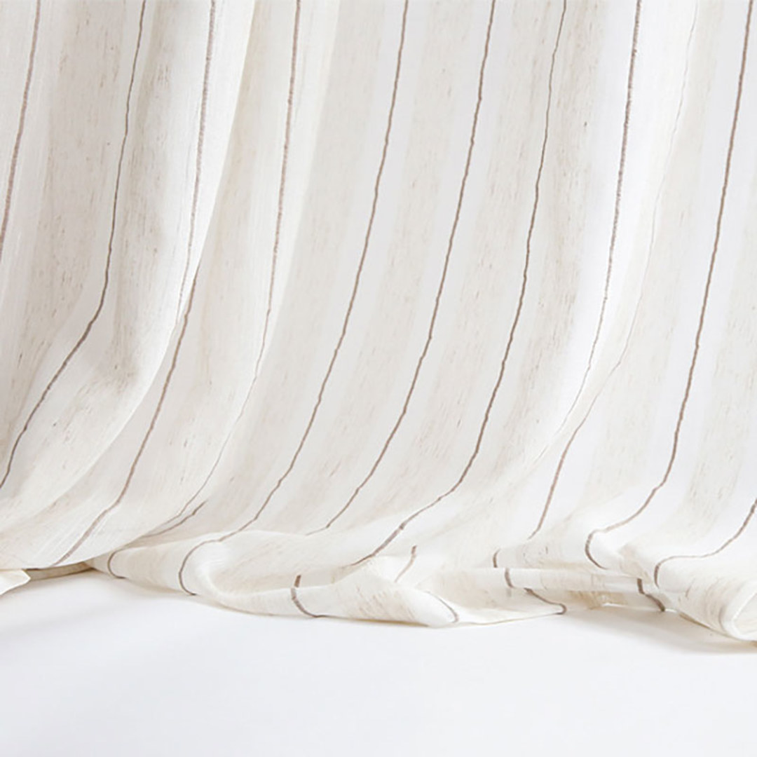 Fügen Sie weiches Licht in Ihren Raum ein und schaffen Sie gleichzeitig Privatsphäre mit diesen stilvollen, strukturierten, gestreiften Leinen-Voile-Vorhängen. Unsere maßgefertigten Voiles werden genau nach Ihren Fensteranforderungen angefertigt und sind in verschiedenen Kopfbändern erhältlich – Ösen, Schlaufen, Plisseekopf, doppelter Plisseekopf, dreifacher Plisseekopf, Stangenschlaufe oder Wellenstore. Entdecken Sie, wie die gestreiften Voile-Vorhänge jeden Raum aufwerten können.