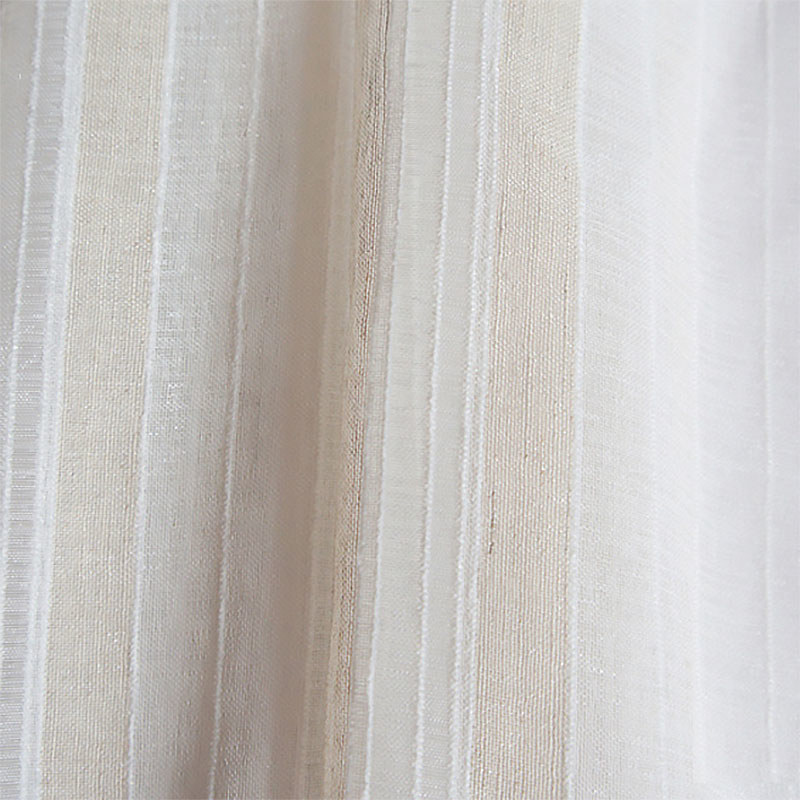 Subtil und stilvoll präsentiert sich dieser transparente Vorhang mit weichen, flockartigen Streifen in natürlichen Leinentönen, die dem luftigen, weißen Stoff Textur und Tiefe verleihen. Das vertikale Muster erzeugt einen leichten, dimensionalen Effekt, der moderne und minimalistische Innenräume wunderschön ergänzt. Unsere maßgefertigten Vorhänge werden genau nach Ihren Wünschen zugeschnitten und sind in verschiedenen Aufhängungsarten erhältlich – Ösen, Schlaufen, Kräuselband, Wellenlegen, Französische Falten, umgekehrte Französische Falten, Stangentasche und Wave-Vorhänge. Entdecken Sie, wie gestreifte Voile-Vorhänge jeden Raum aufwerten können.