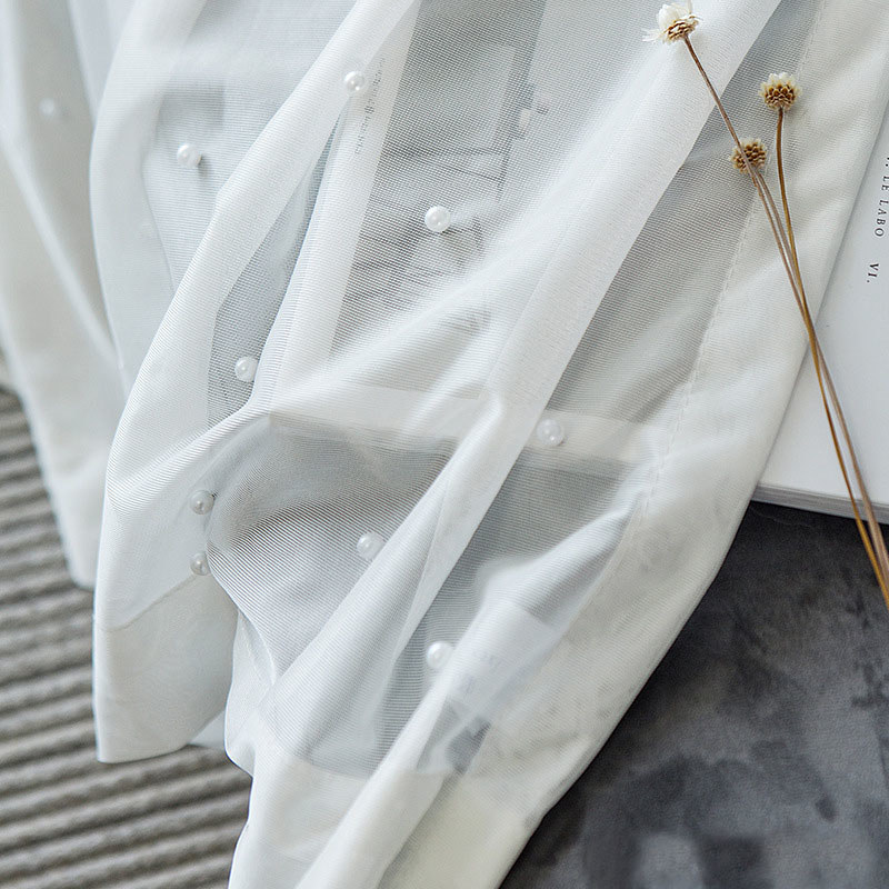 Wir liefern Glasperlen bestückten weißen Voile-Stoff für 17,99 £ pro 280cm x 100cm.