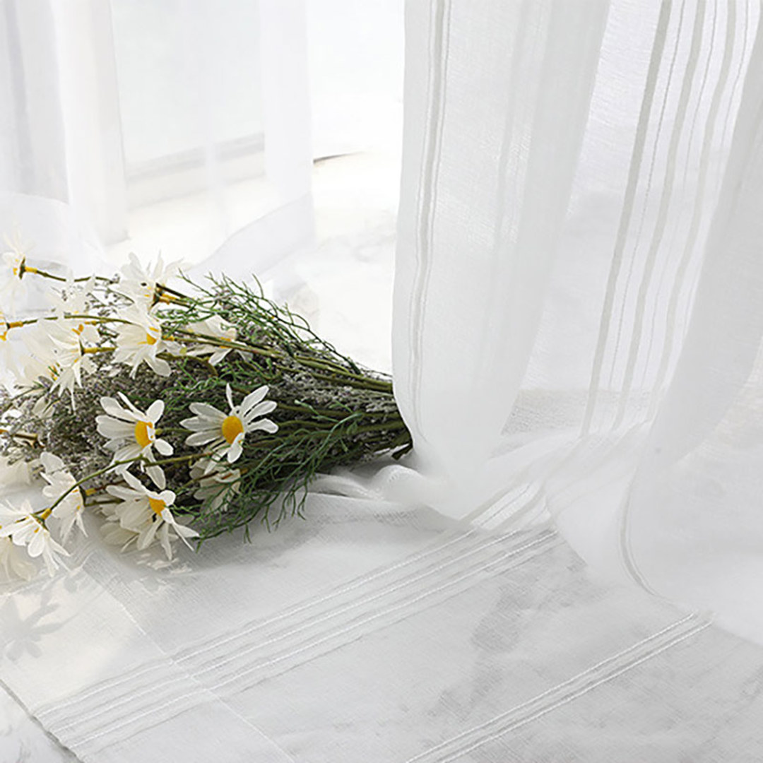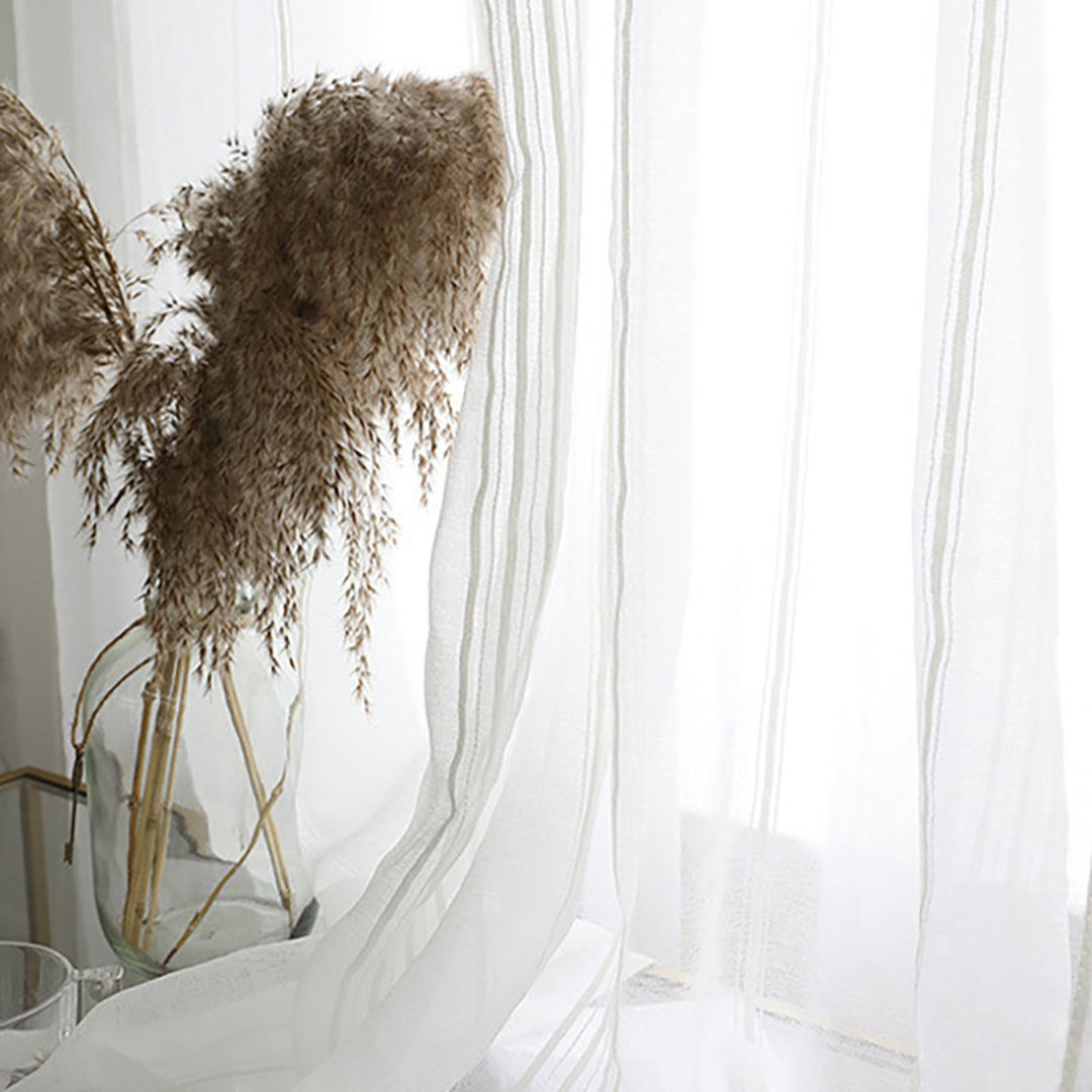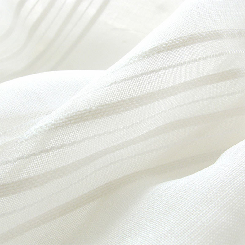 Ohne ablenkende Farben hinterlassen die weißen Voile-Vorhänge ein Gefühl von Frieden, Komfort und Schlichtheit. Die zarten Muster machen die gestreiften weißen Voile-Vorhänge so auffällig und attraktiv. Benötigen Sie kleine Vorhänge, extra große Vorhänge, lange Vorhänge, Erkerfenstervorhänge? Unsere maßgefertigten Vorhänge können genau auf Ihre Fensteranforderungen zugeschnitten werden und sind in verschiedenen Faltenarten erhältlich, darunter Schlaufenfaltung, Doppellegfaltung, Dreifachlegfaltung, Ösen, Schlaufen und Vorhänge mit Tunnelzug. Entdecken Sie, wie gestreifte Voile-Vorhänge jeden Raum verschönern können.