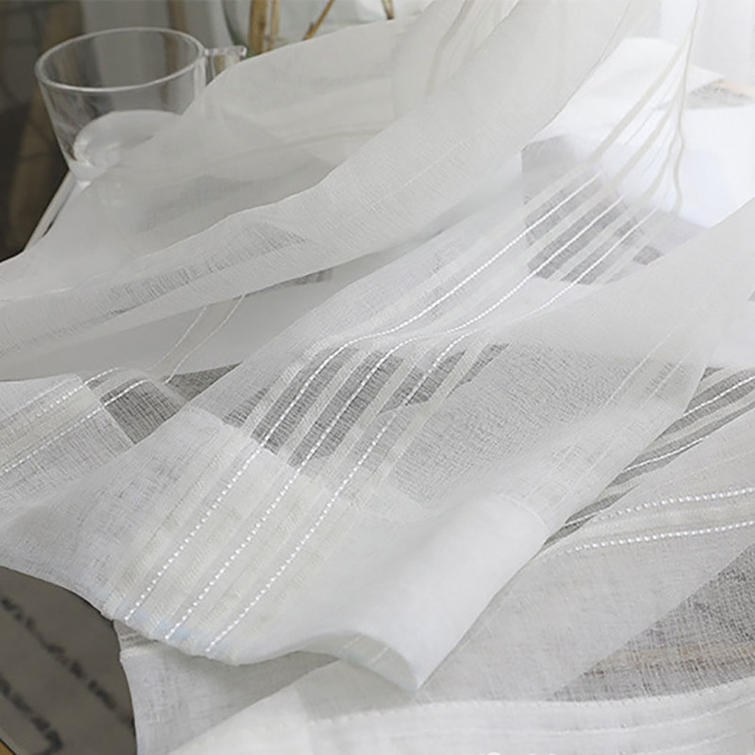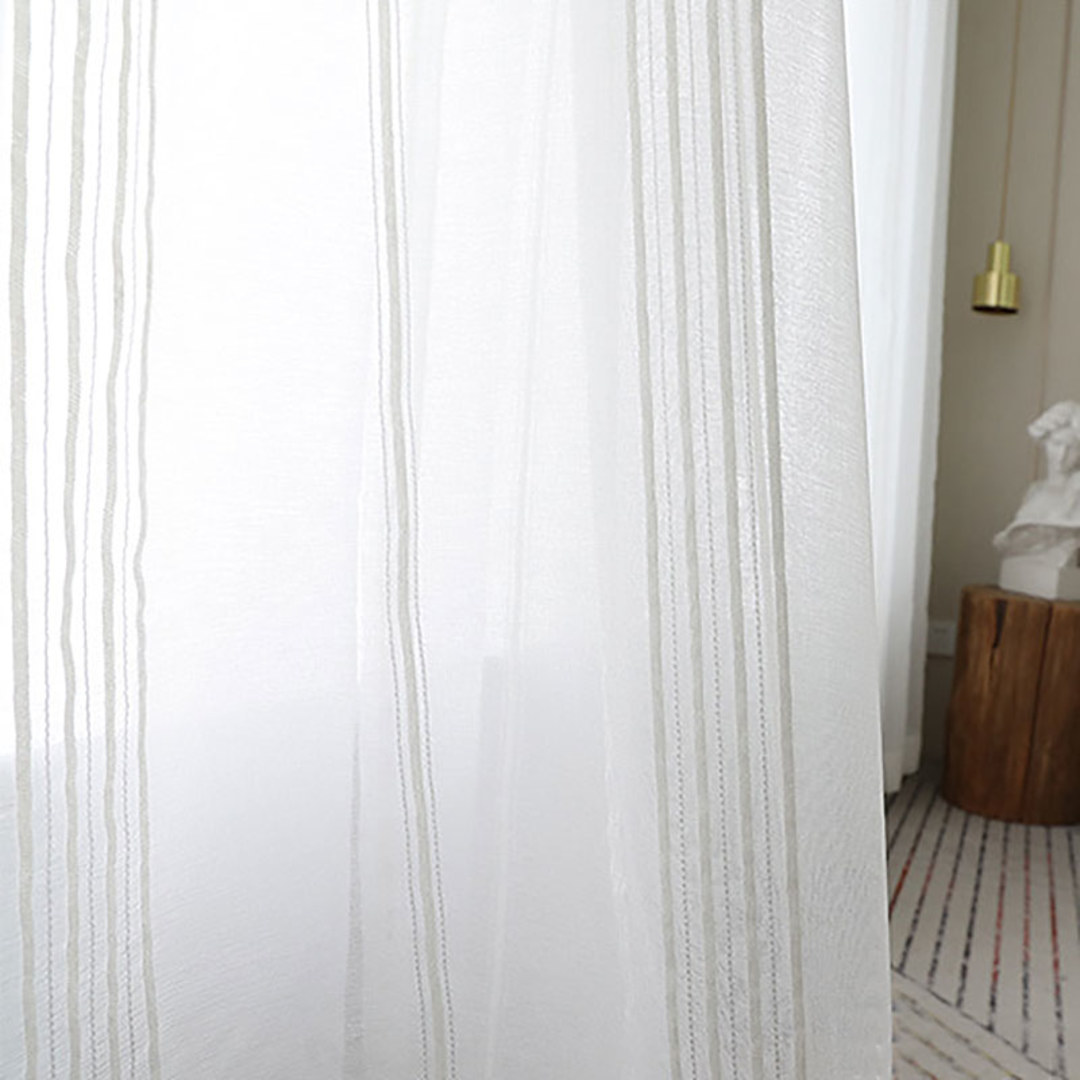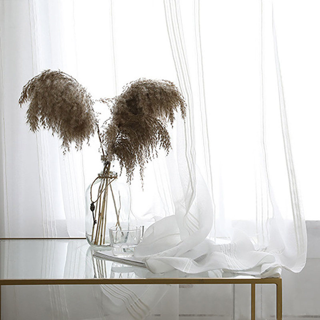 Ohne ablenkende Farben hinterlassen die weißen Voile-Vorhänge ein Gefühl von Frieden, Komfort und Schlichtheit. Die zarten Muster machen die gestreiften weißen Voile-Vorhänge so auffällig und attraktiv. Benötigen Sie kleine Vorhänge, extra große Vorhänge, lange Vorhänge, Erkerfenstervorhänge? Unsere maßgefertigten Vorhänge können genau auf Ihre Fensteranforderungen zugeschnitten werden und sind in verschiedenen Faltenarten erhältlich, darunter Schlaufenfaltung, Doppellegfaltung, Dreifachlegfaltung, Ösen, Schlaufen und Vorhänge mit Tunnelzug. Entdecken Sie, wie gestreifte Voile-Vorhänge jeden Raum verschönern können.