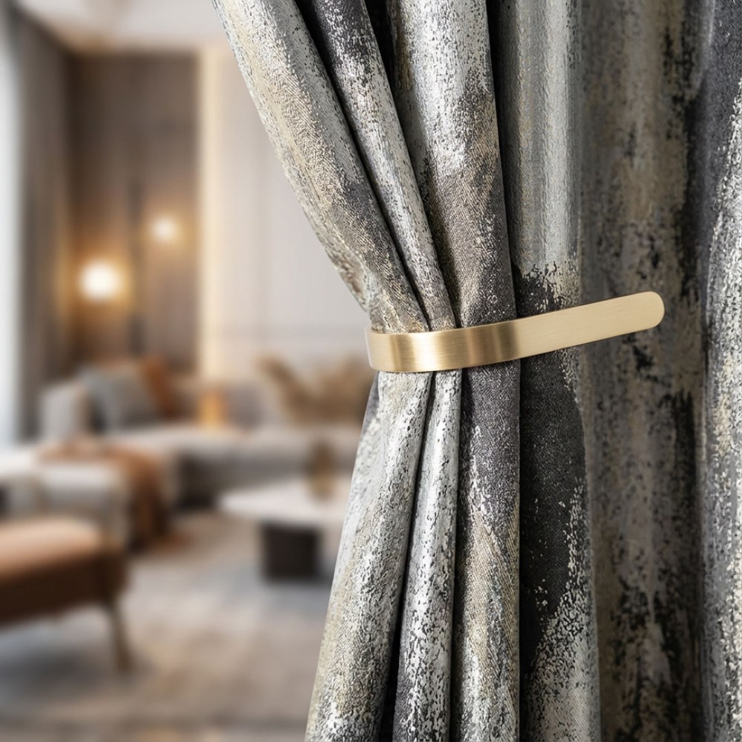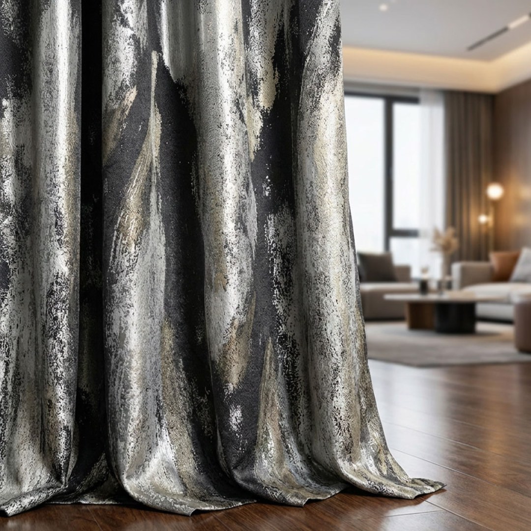 Elevate your space with these jacquard curtains, where painterly brush-stroke patterns and a subtle shimmer create an artful sense of luxury. Rich textures and refined colorways combine contemporary elegance with timeless sophistication, offering both privacy and dramatic style.