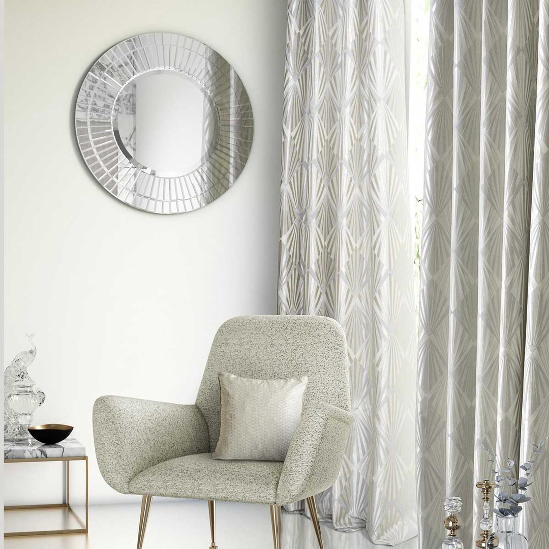 Deco Diamond Jacquard Geometric Cream Gold Faux Silk Curtains