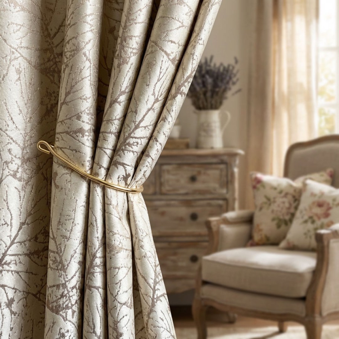 Nature's Imprint Luxury Jacquard Champagne Gold Foliage Curtains