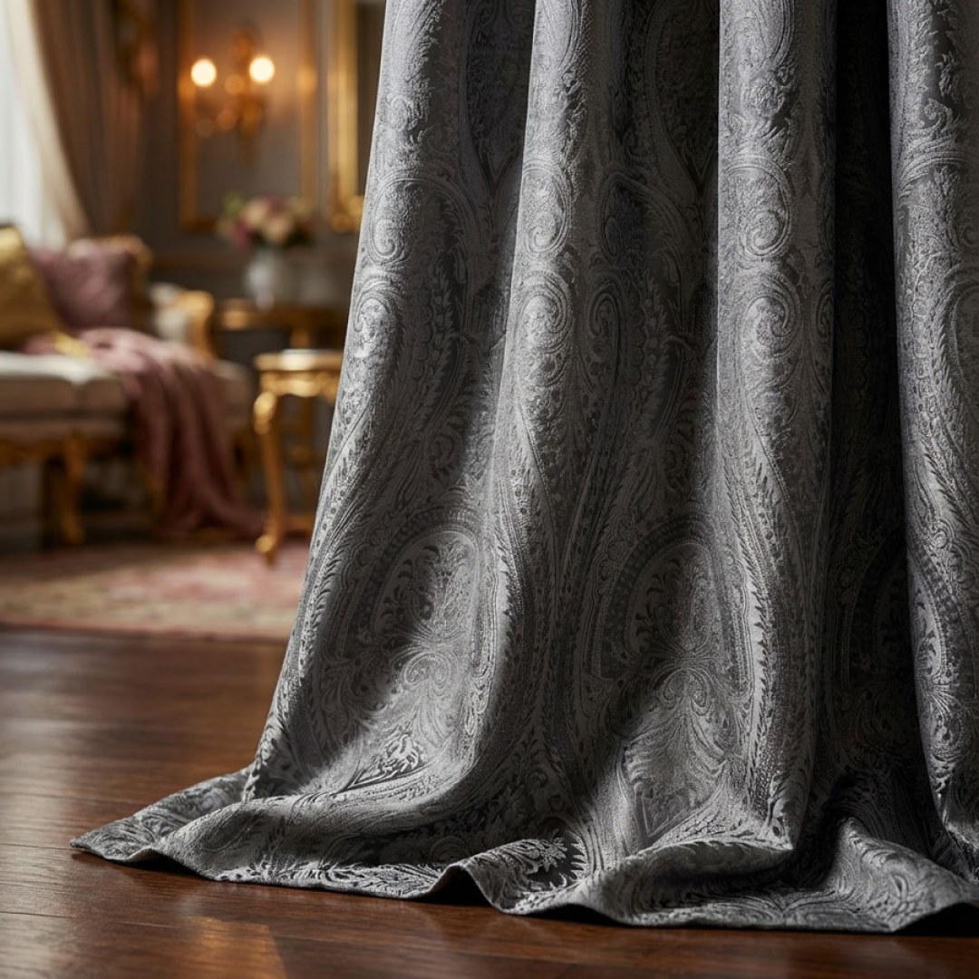 Elevate your space with the timeless elegance of Royal Mirage. This luxurious velvet curtain features an intricately woven damask pattern with a soft, dimensional texture. Perfect for creating a refined, regal atmosphere in living rooms, bedrooms, or formal spaces.