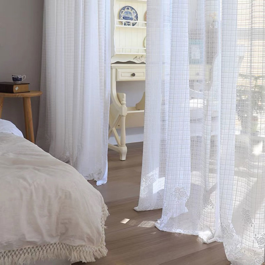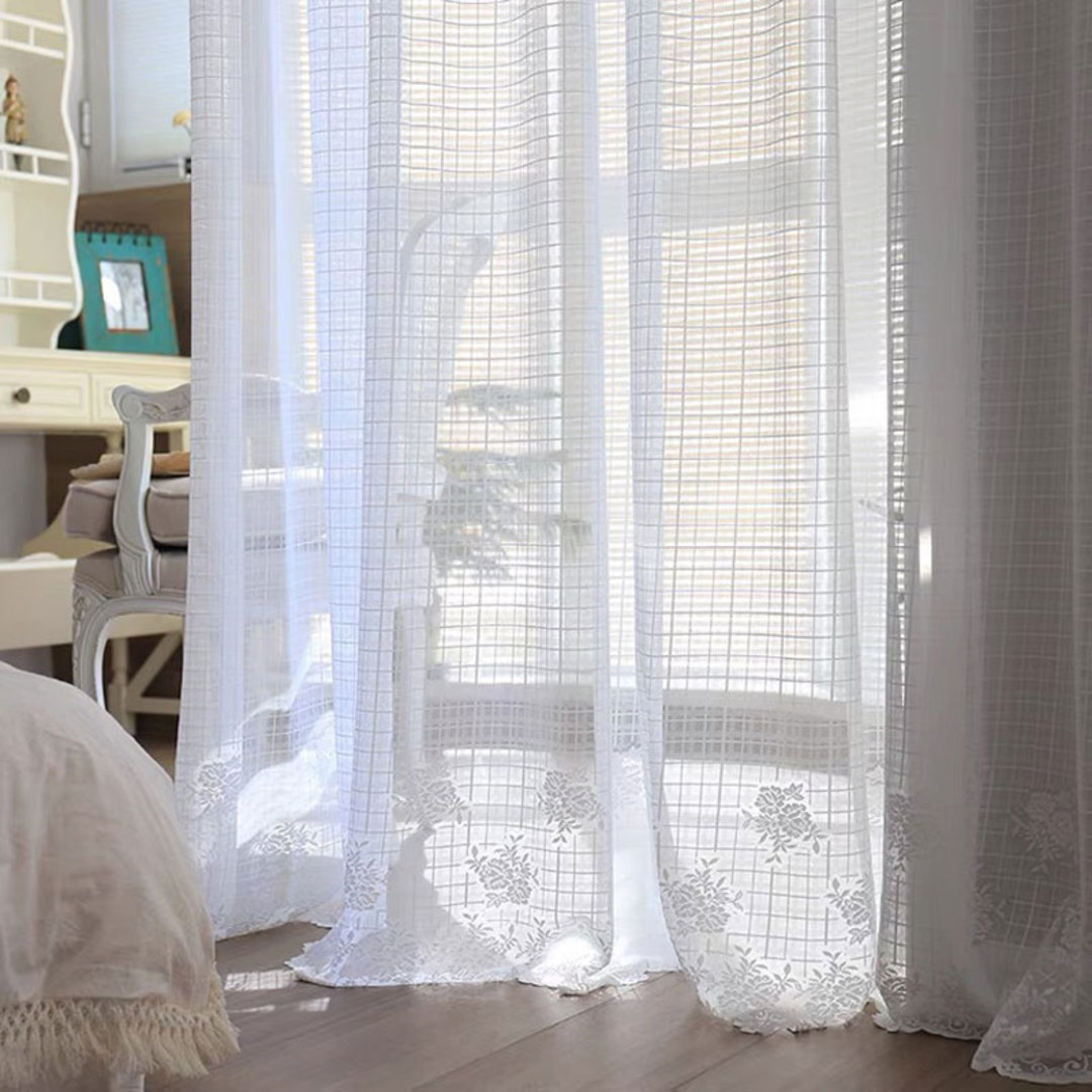 Wake up with these beautiful roses each morning. The unique checked design creates intricating patterns and textures. The scalloped edge adds elegant finish to these exquisite curtains.