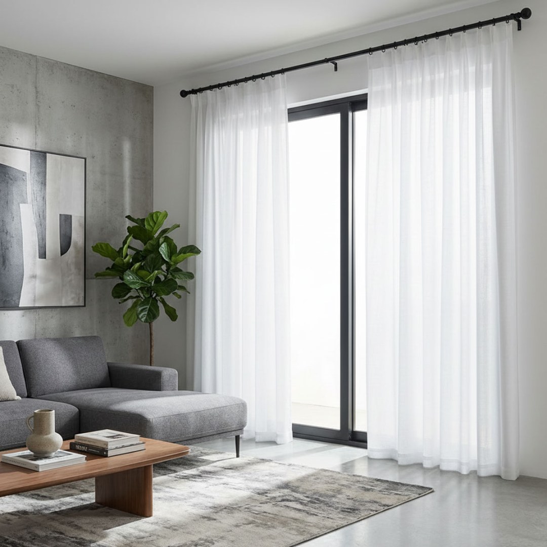 Soft and airy with a subtle linen-style texture, these voile curtains filter light while adding a versatile, refined touch to any interior. Their gentle weave makes them suitable for a range of contemporary and adaptable spaces.