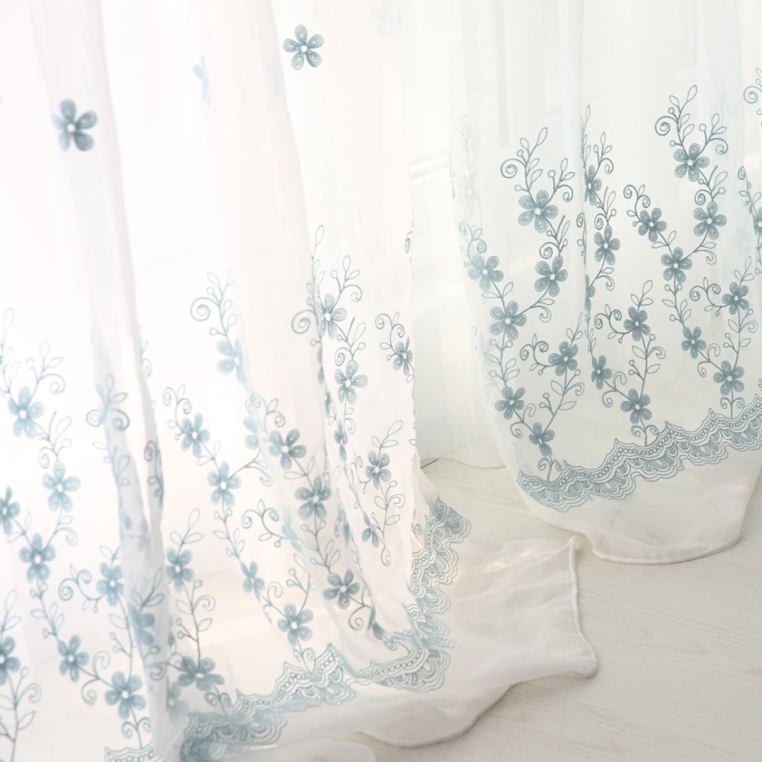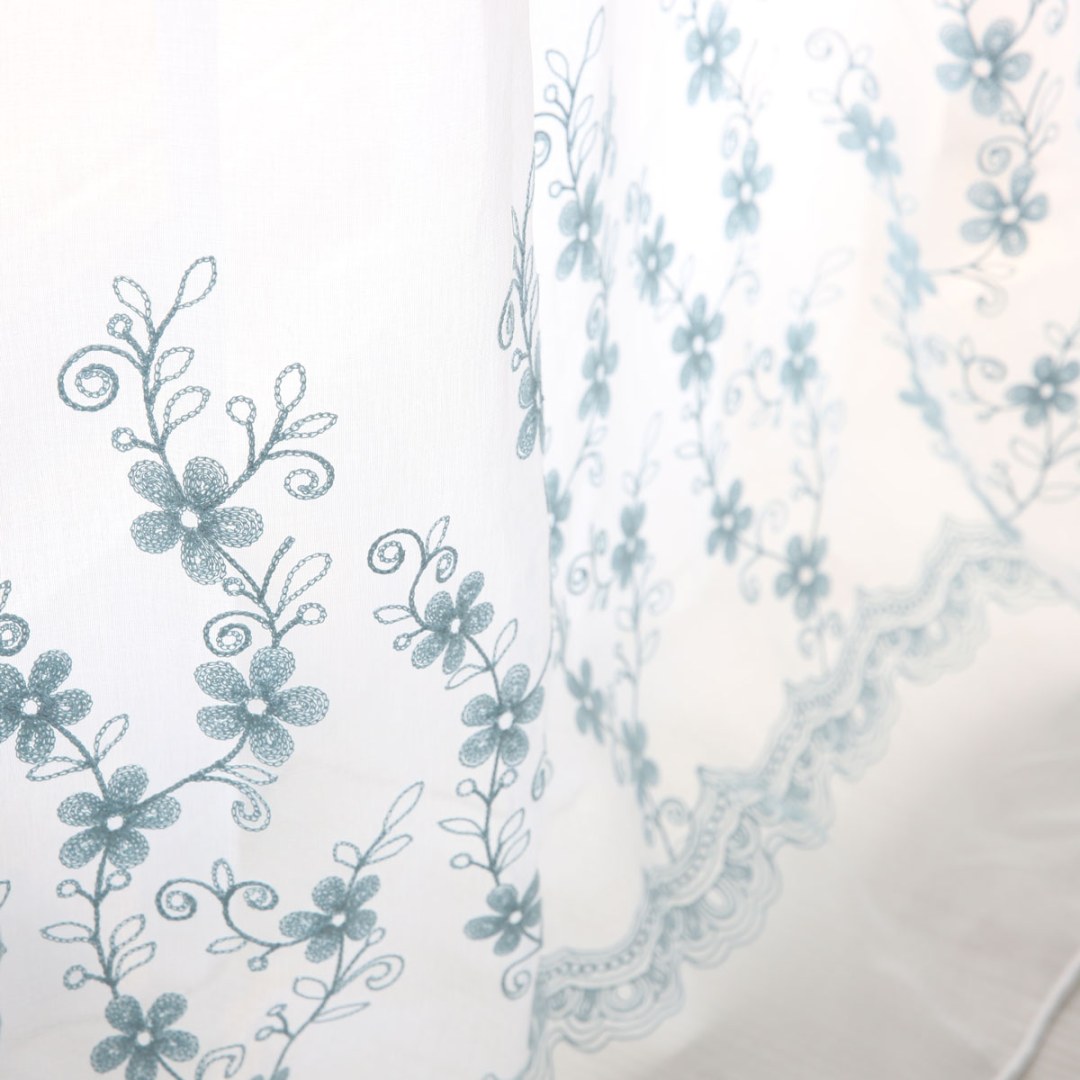 Softly embroidered with delicate floral motifs, these voile curtains add airy elegance and subtle texture. Their muted tones and refined design make them versatile for country, farmhouse, shabby chic, and romantic interiors.