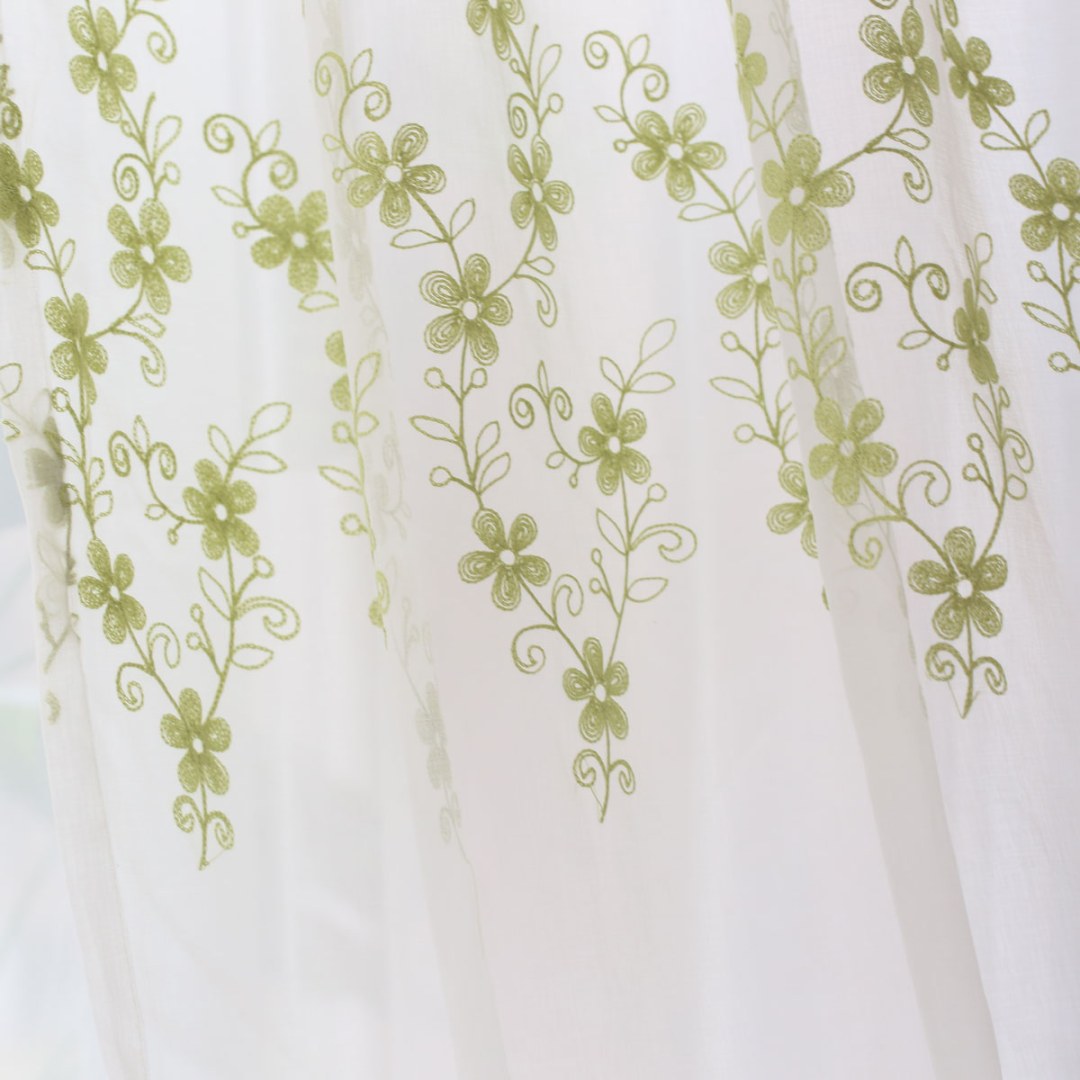 Softly embroidered with delicate floral motifs, these voile curtains add airy elegance and subtle texture. Their muted tones and refined design make them versatile for country, farmhouse, shabby chic, and romantic interiors.