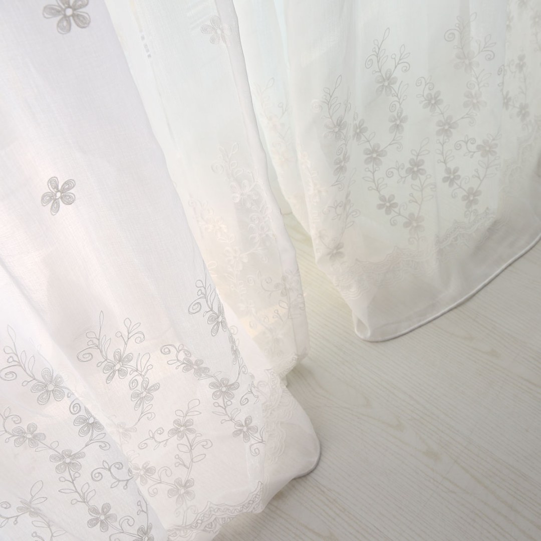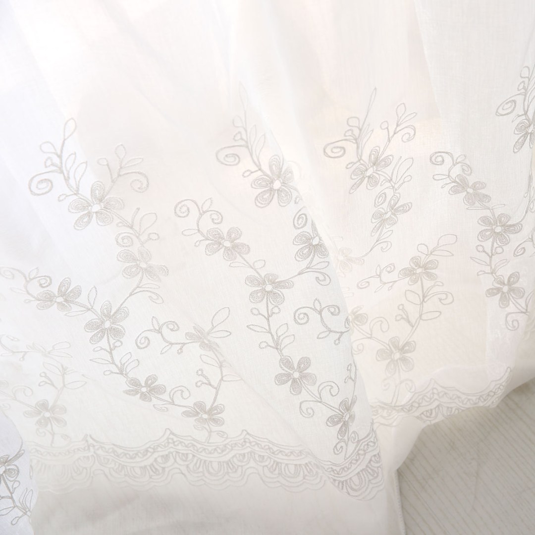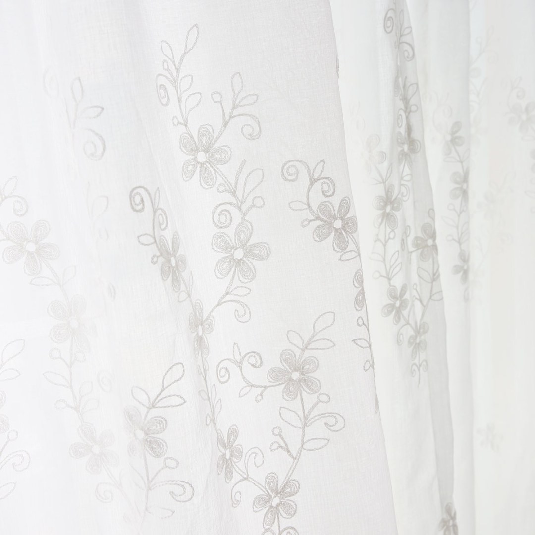Softly embroidered with delicate floral motifs, these voile curtains add airy elegance and subtle texture. Their muted tones and refined design make them versatile for country, farmhouse, shabby chic, and romantic interiors.