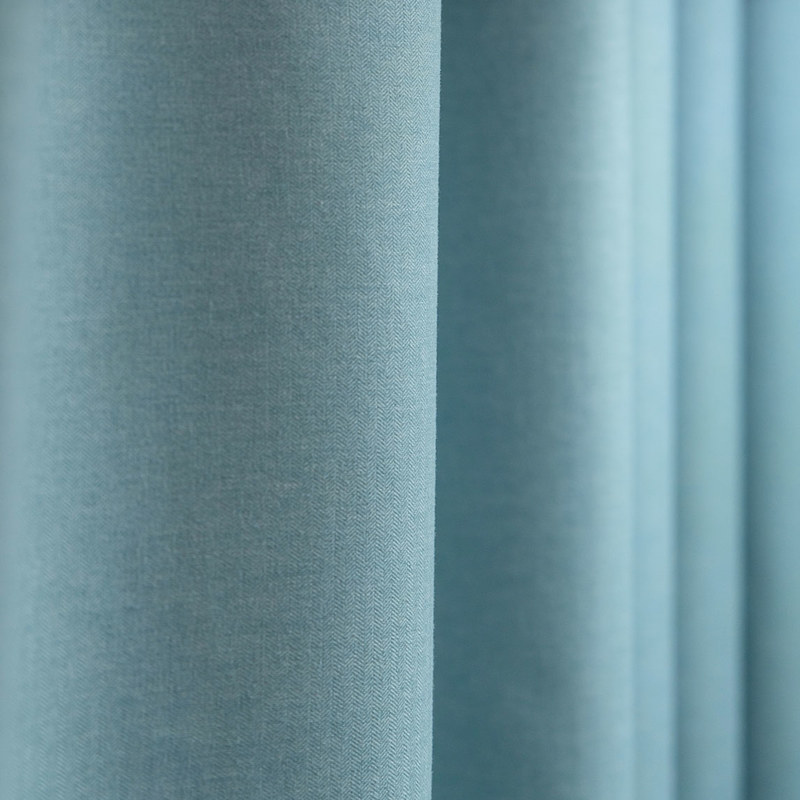 Ce design moderne agrémentera n'importe quelle pièce de votre choix. Le motif chevrons en jacquard est élégant et la couleur bleu pastel apparaît raffinée. Ce tissu de haute qualité offre d'excellentes performances en matière d'obscurcissement à 100 % sans doublure occultante. Nos rideaux sur mesure sont créés selon vos exigences exactes et sont disponibles dans un choix de style de tête - œillets, patte de fixation, plissé simple, plissé double, plissé triple et rideaux à plis amples. Commandez des embrasses et des coussins assortis pour rehausser l'ensemble de la pièce. Découvrez comment les rideaux occultants peuvent moderniser n'importe quelle pièce.