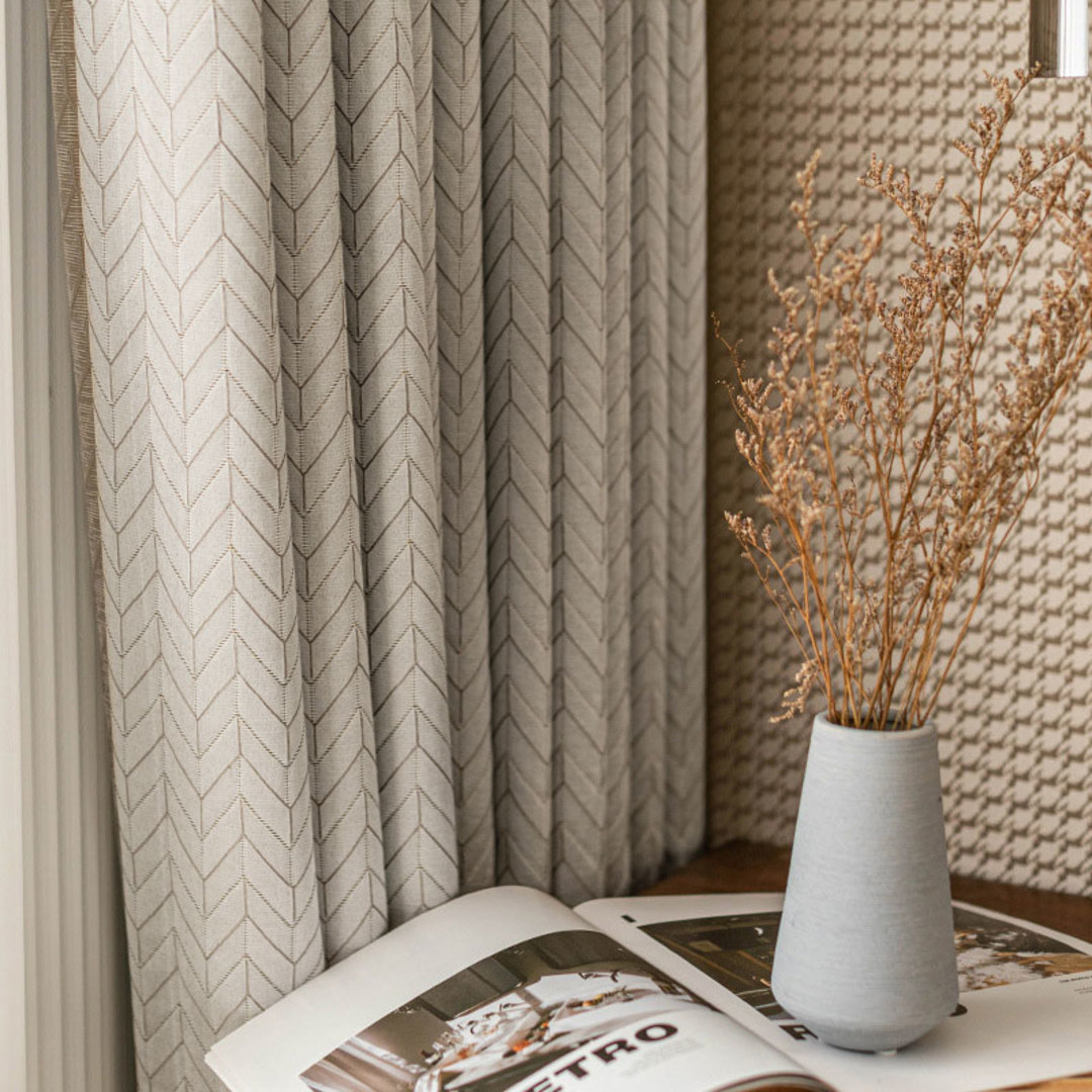 Savourez l'allure luxueuse de nos rideaux à chevrons Art Déco, une fusion harmonieuse de sophistication moderne et d'élégance intemporelle. Plongez dans l'exquise beauté de ces rideaux, où le motif à chevrons complexe rayonne avec opulence et une touche contemporaine.