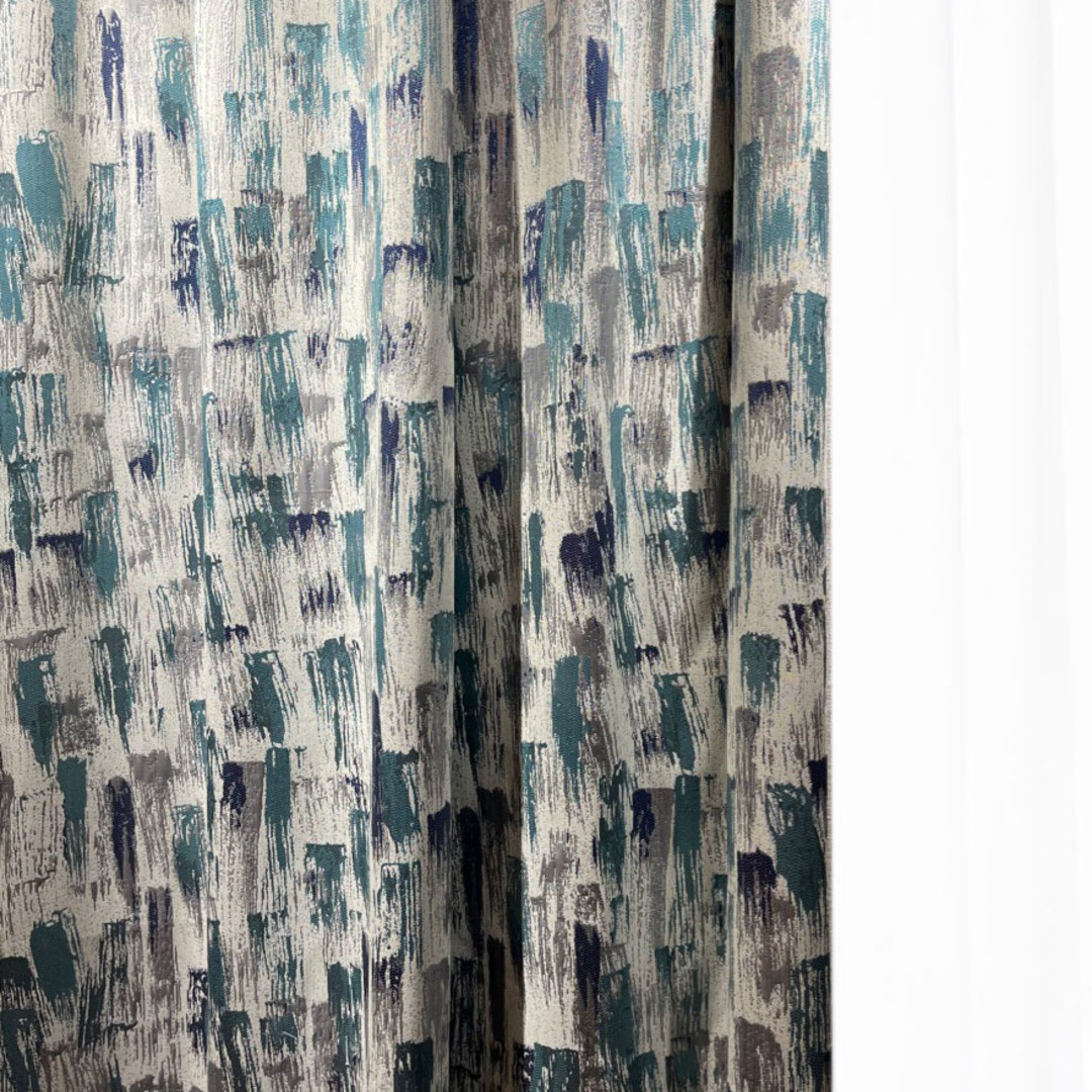 Rafraîchissez votre décoration intérieure avec une touche artistique. Les rideaux jacquard de luxe Impressionist Strokes bleu sarcelle apportent énergie et couleurs à votre espace. Les magnifiques détails argentés sont tout simplement glamour et ajoutent une touche d'éclat à votre intérieur. Un rideau magnifique pour les amateurs d'art. Nos rideaux sur mesure sont méticuleusement confectionnés pour répondre à vos préférences spécifiques. Ils sont disponibles dans une variété de styles de plis pour s'adapter à vos goûts, notamment le galon plissé, à œillets, le plis pincé, le plis tailleur, le plis boîte inversé, le passe-tringle à patte, le passe-tringle à coulisse, la poche à tringle et le rideau à vague. Découvrez comment les rideaux abstraits peuvent moderniser n'importe quelle pièce.