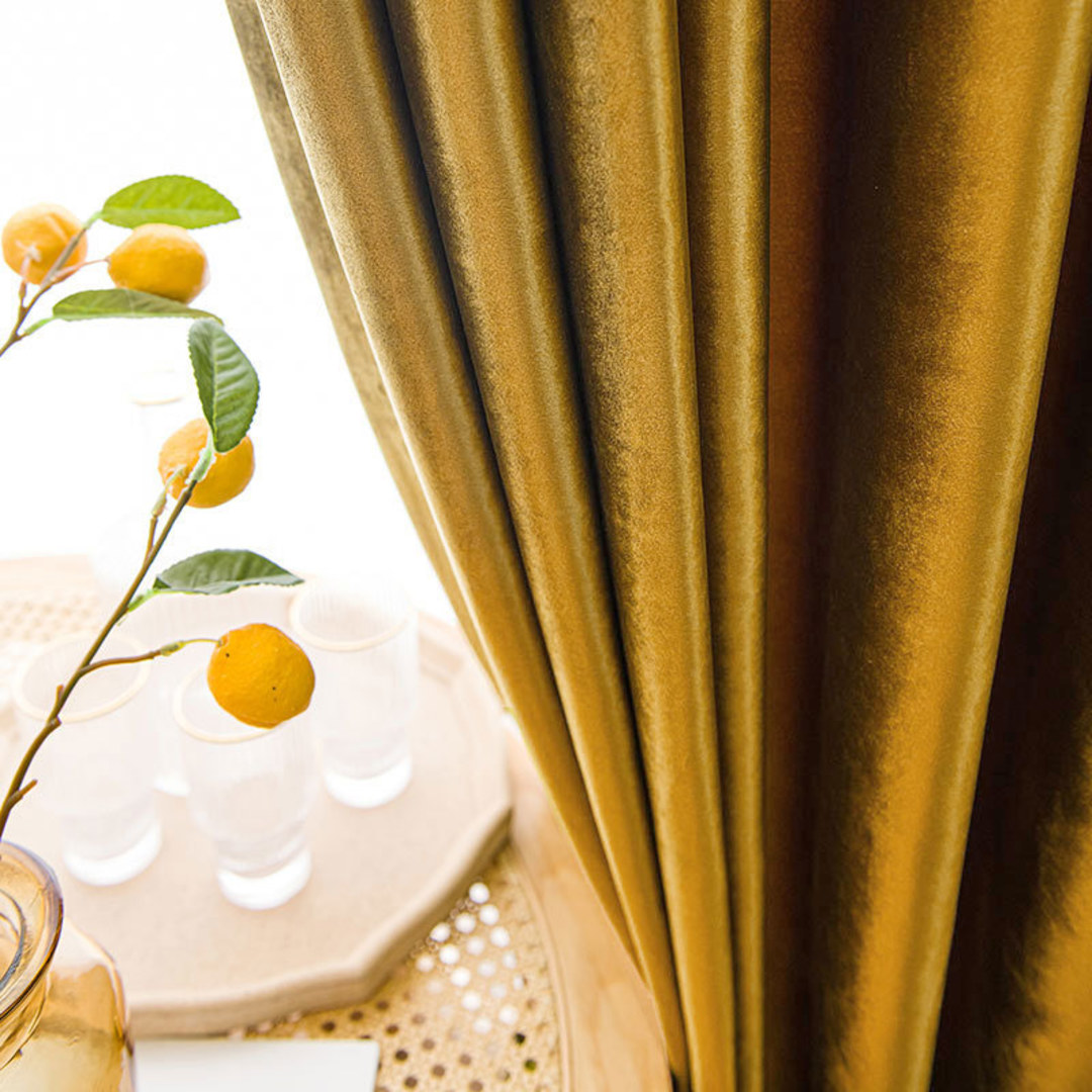 Découvrez comment les rideaux en velours doré/jaune peuvent moderniser n'importe quelle pièce.