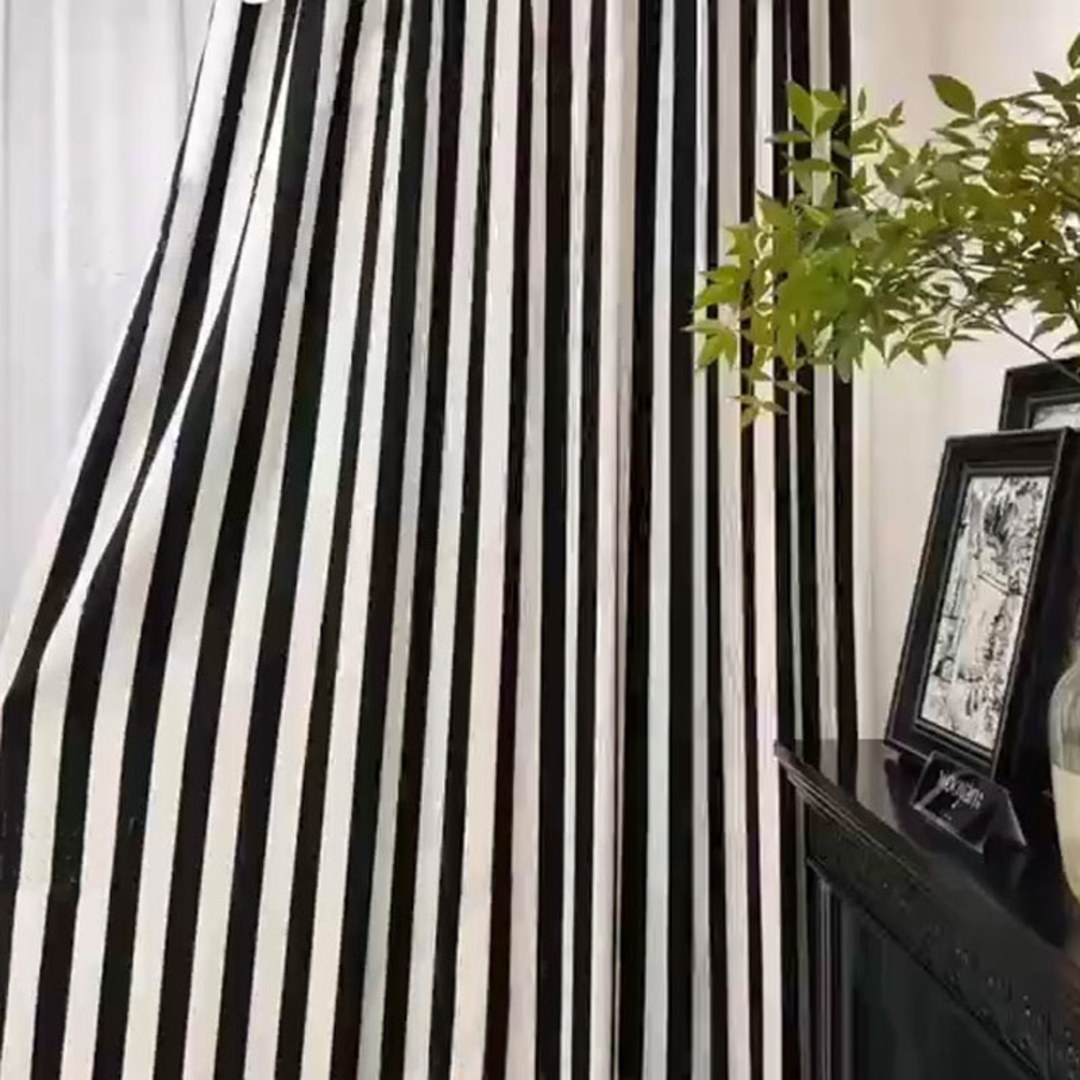 Fabriqués à partir de chenille de haute qualité, ces rideaux rayés modernes noir et blanc présentent une texture élégante, un poids lourd et une douceur agréable. La caractéristique unique double face les rend parfaits pour séparer les pièces et pour les rideaux de cubicules. Nos rideaux sur mesure sont méticuleusement confectionnés pour répondre à vos préférences spécifiques. Ils sont disponibles dans une variété de styles de tête pour s'adapter à vos goûts, notamment le galon plissé, l’œillet, le plissé pincé, le plissé tailleur, le plissé boîte inversé, le patin à boucle, le patin arrière, la poche à tringle et le rideau à vague. Découvrez comment les rideaux rayés peuvent moderniser n’importe quelle pièce. NOTE : Un tissu double face ne signifie pas nécessairement que les deux côtés ont une apparence identique. Au lieu de cela, les deux côtés sont de haute qualité et peuvent être utilisés efficacement pour la fabrication de rideaux. Veuillez commander des échantillons GRATUITS pour voir et sentir le tissu.