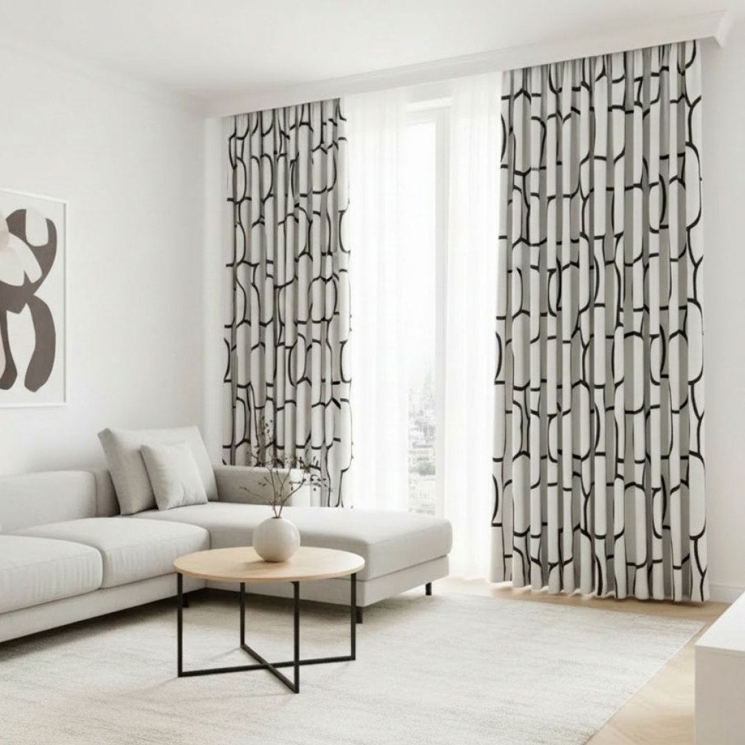 We can source materials and create bespoke designs tailored to your needs: Specific fabrics, decorative finishes, curtain tops and heading styles, and custom-shaped windows.