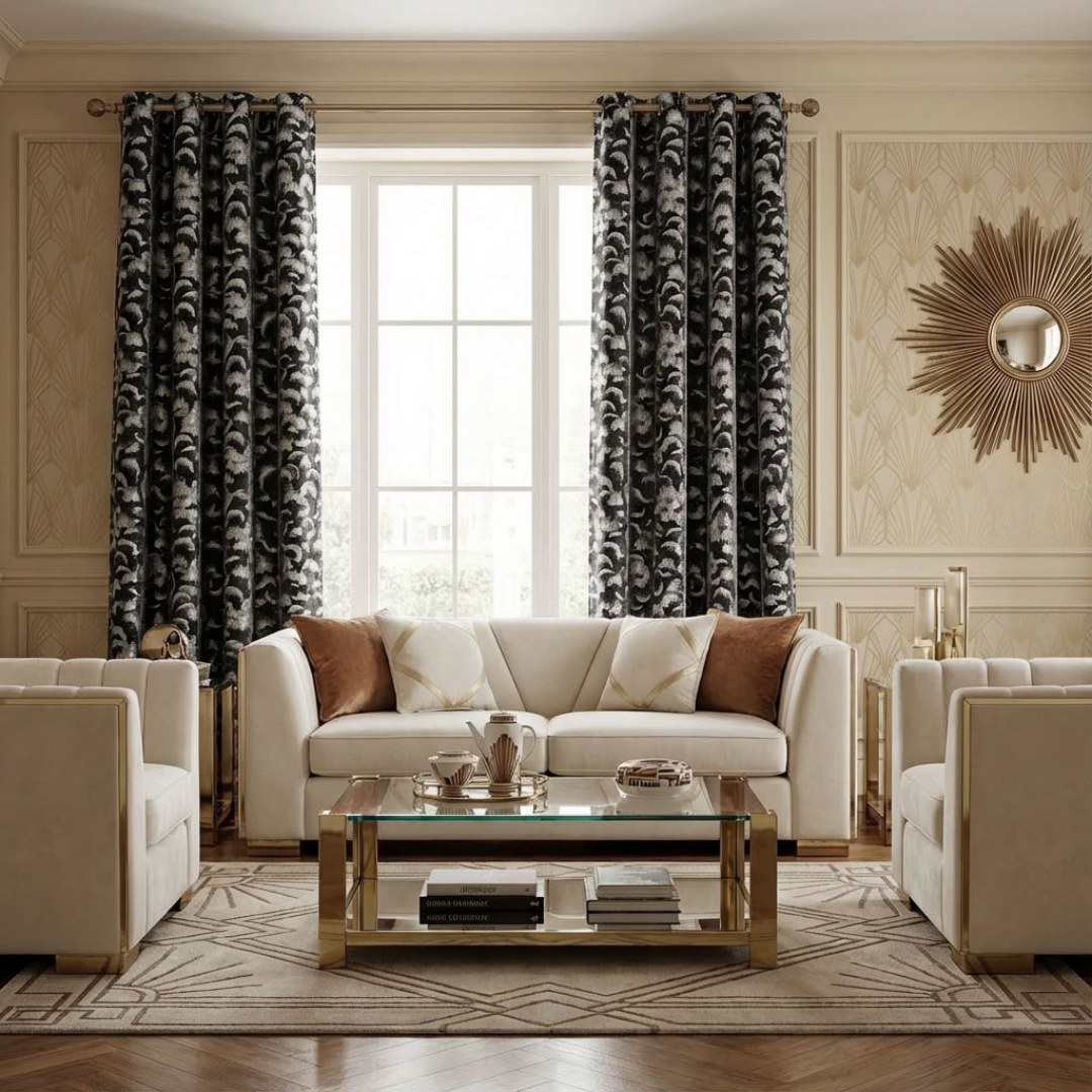 Fanburst Art déco Rideaux géométriques noirs et blancs