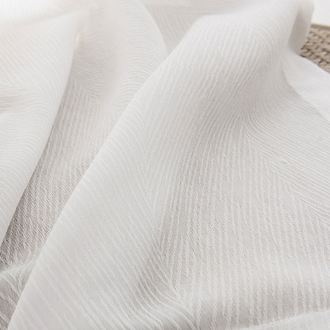 Des espaces de vie épurés peuvent être de véritables havres de paix. Essayez une manière subtile de donner à votre intérieur un aspect chaleureux, tout en restant minimaliste, avec ces rideaux voilages texturés en chevron sur mesure.