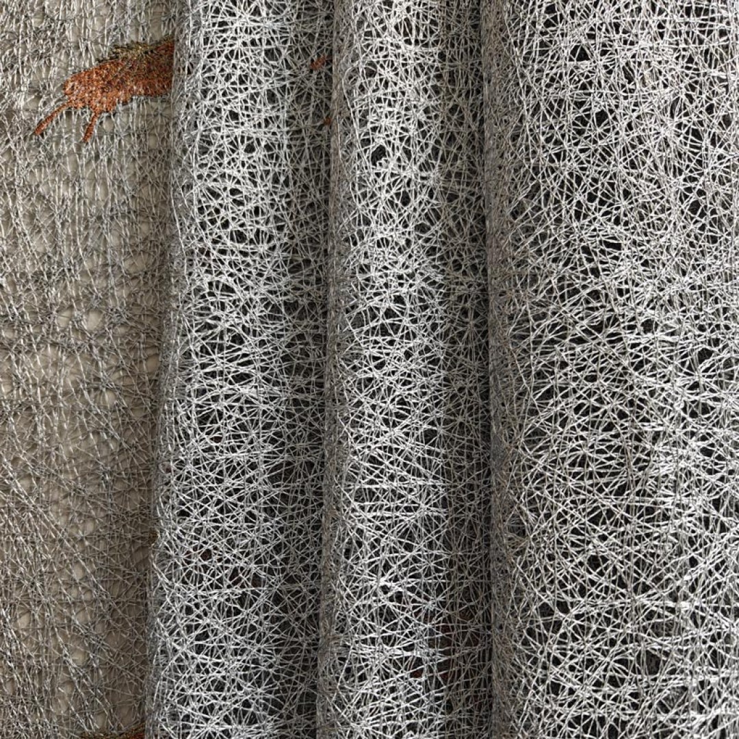 Un tissu pour rideau en voile contemporain, orné de délicats papillons brodés avec des touches de paillettes dorées. Le tissage aérien et les détails chatoyants apportent une touche de fantaisie et d’élégance, idéale pour ajouter de la lumière, de la texture et une touche de glamour aux intérieurs modernes.