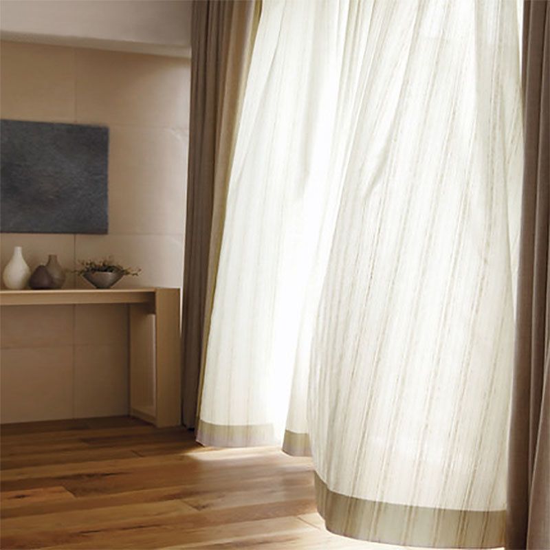 Subtil et élégant, ce rideau voilé présente de doux rayures flockées dans des tons de lin naturels, ajoutant texture et profondeur au tissu blanc aérien. Le motif vertical crée un effet léger et dimensionnel qui complète magnifiquement les intérieurs modernes et minimalistes. Nos rideaux sur mesure sont confectionnés selon vos exigences exactes et sont disponibles dans un choix de styles de tête : œillets, pattes de fixation, plissé simple, plissé façonné, plissé pincé, pince inversée, poche à tringle et rideaux à vague. Découvrez comment les rideaux voilés rayés peuvent moderniser n'importe quelle pièce.