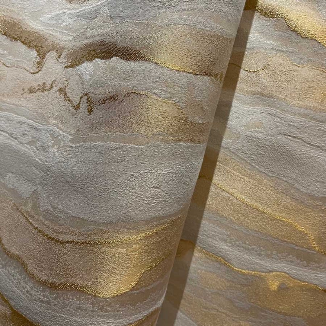 Inspired by the natural beauty of marble, this fabric features soft, flowing lines in shades of beige, cream, and gold, reminiscent of delicate stone veining. The subtle shimmer gives it a luxurious touch, while the contemporary design makes it ideal for creating a calm and elegant ambiance in modern interiors.
