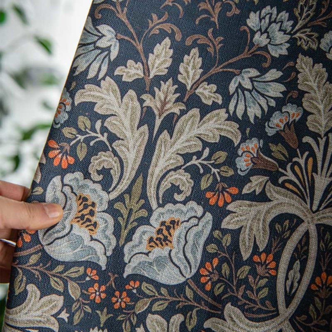 Adorn your space with the Azure Petals linen style navy blue floral curtains. The intricate floral pattern elegantly unfolds, combining shades of deep navy blue with delicate azure petals. Crafted with a linen-style texture, these curtains bring both sophistication and a touch of nature to your decor, creating a serene ambiance in any room.