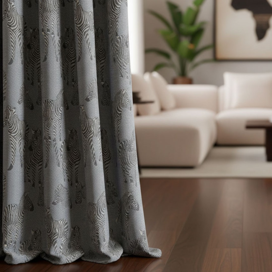 These zebra-inspired blackout curtains in soft gray tones feature a modern, stylized pattern that merges contemporary sophistication with exotic flair. Perfect for adding bold texture, visual interest, and a chic statement to any interior.