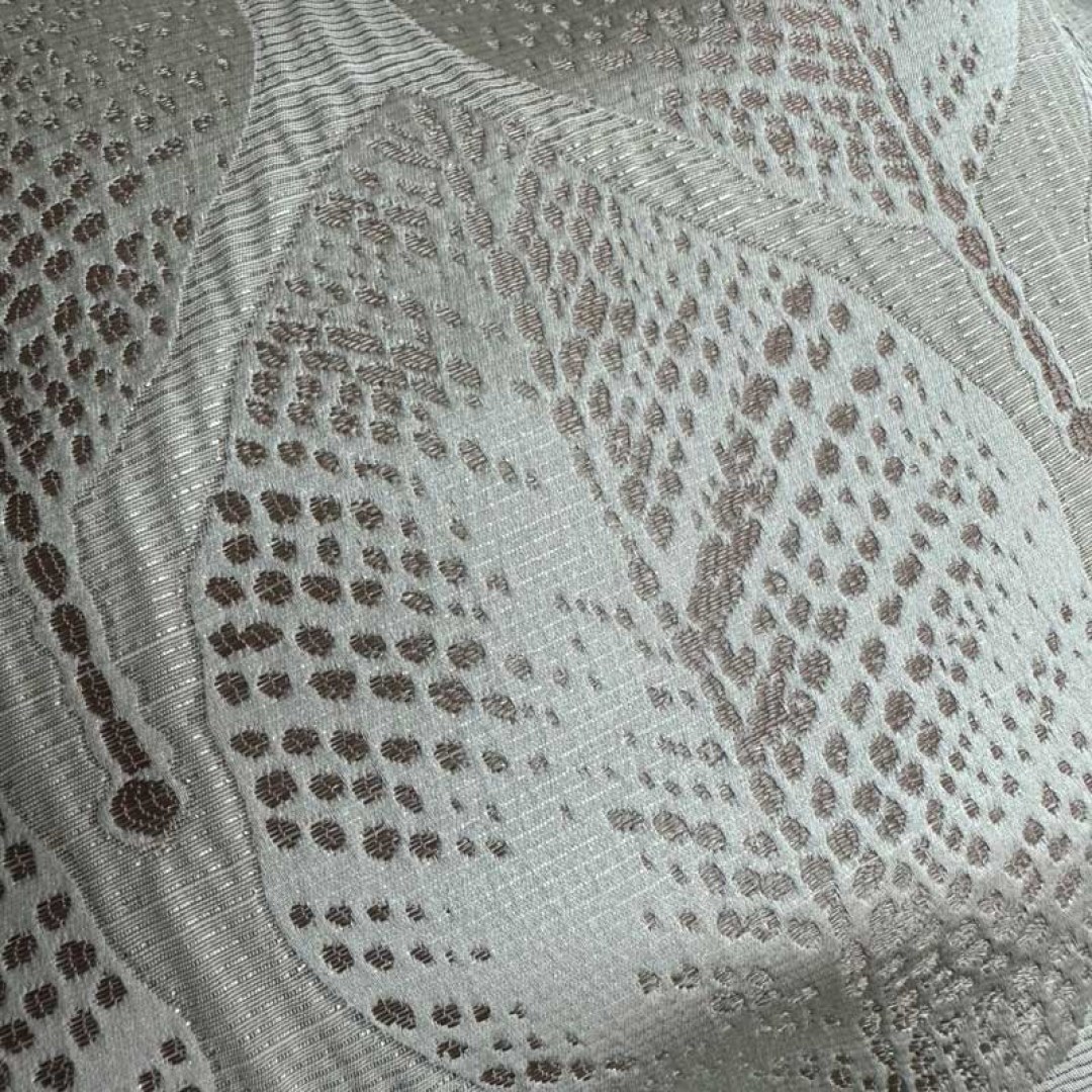 Featuring elegant jacquard leaf motifs with a subtle metallic sheen, this fabric blends contemporary sophistication with organic charm, adding texture and refined interest to any interior.