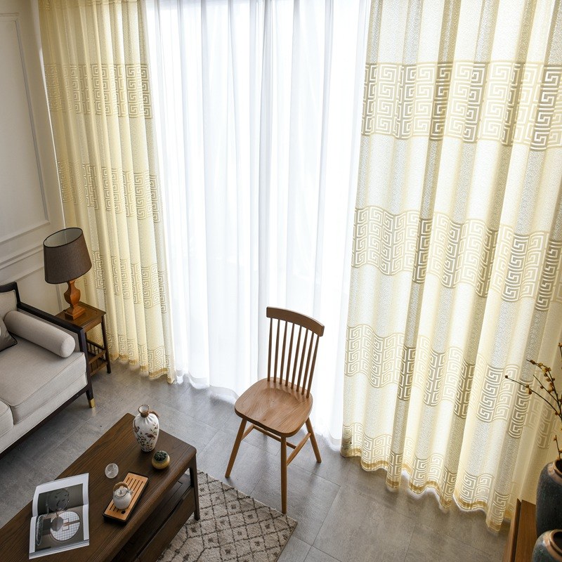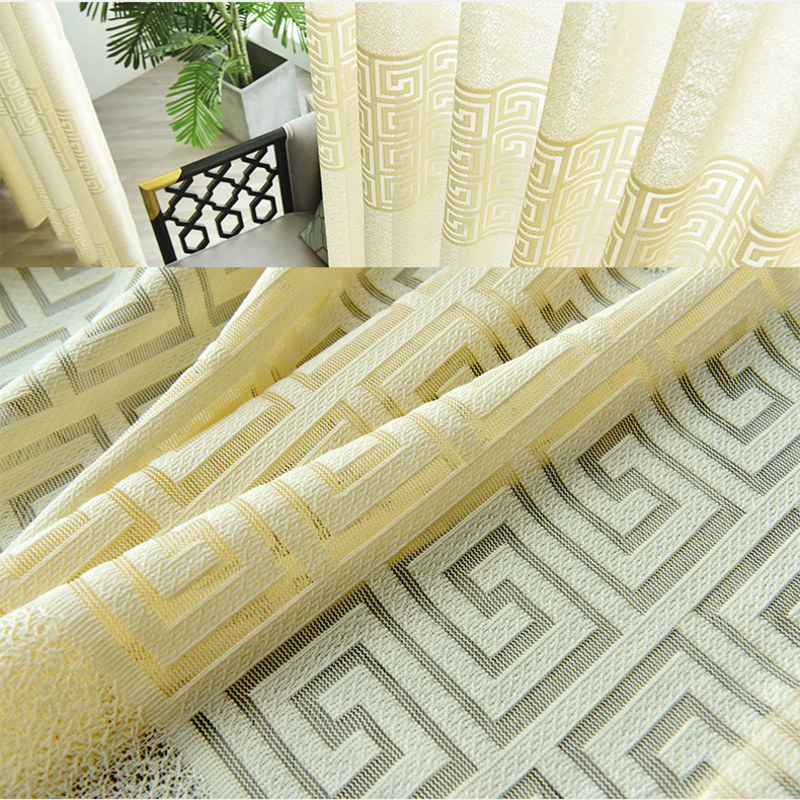 Greek Key Light Yellow Heavy Mesh Net Curtain 5% OFF