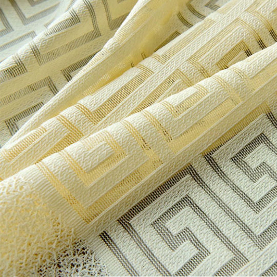 These 'Greek Key' jacquard yellow heavy net curtains are made from a delightful, soft touch sheer fabric.