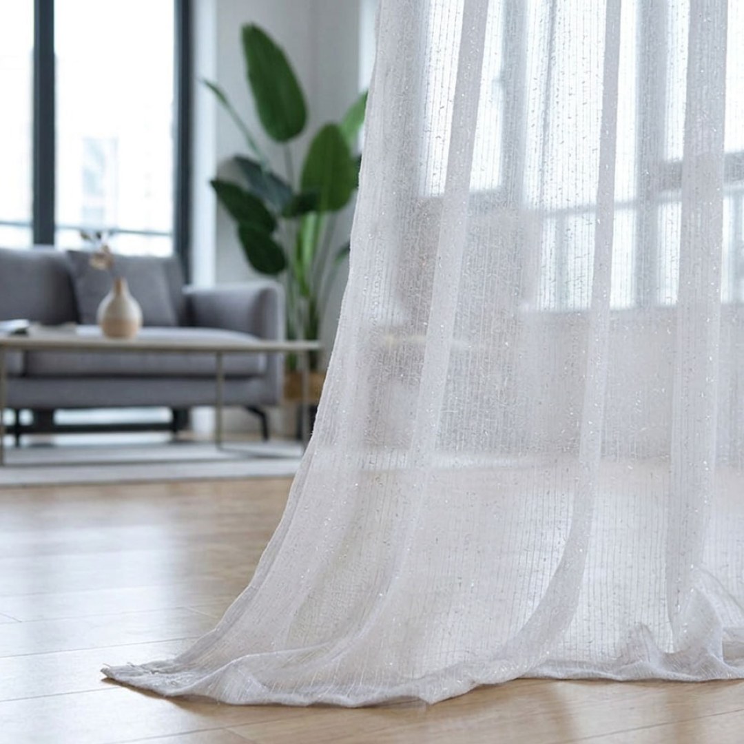 Twinkling Stars Glitter White Sheer Voile Curtain