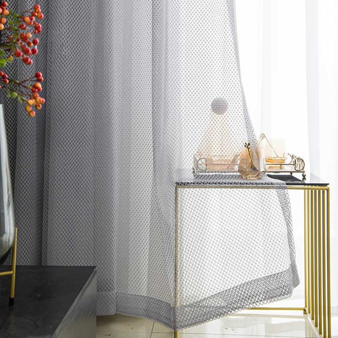 Enmeshed Diamond Grid Light Grey Net Curtain