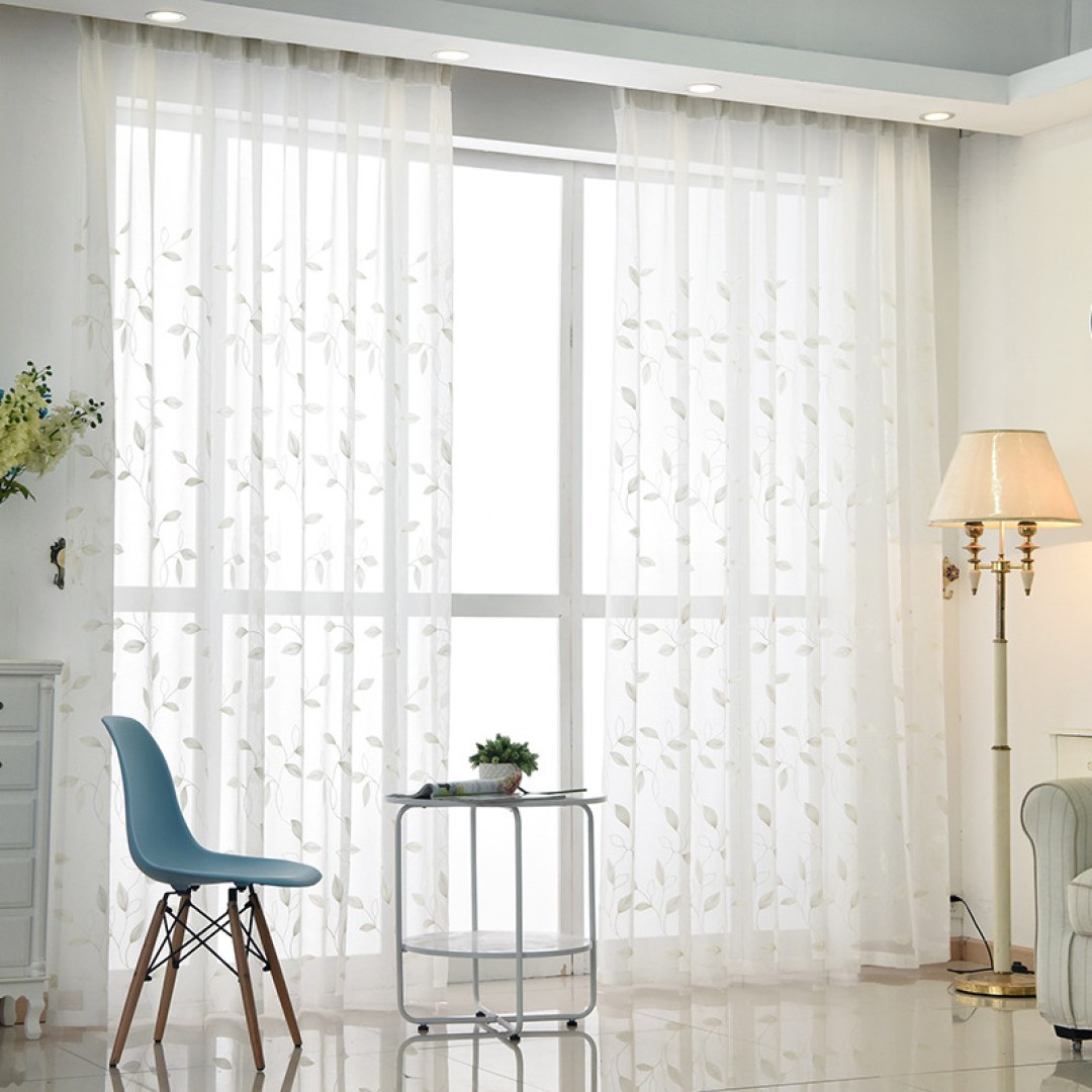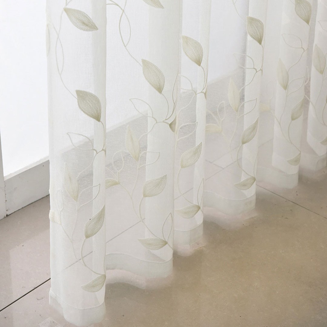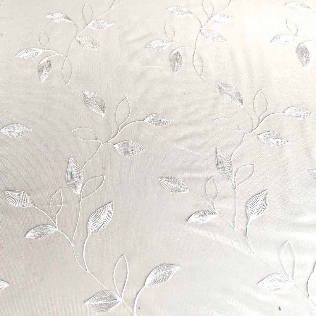 Embroidered with a delicate leaf motif, this ivory voile curtain adds soft texture and elegance. Its airy fabric and refined design blend traditional charm with contemporary versatility, enhancing a variety of interiors.