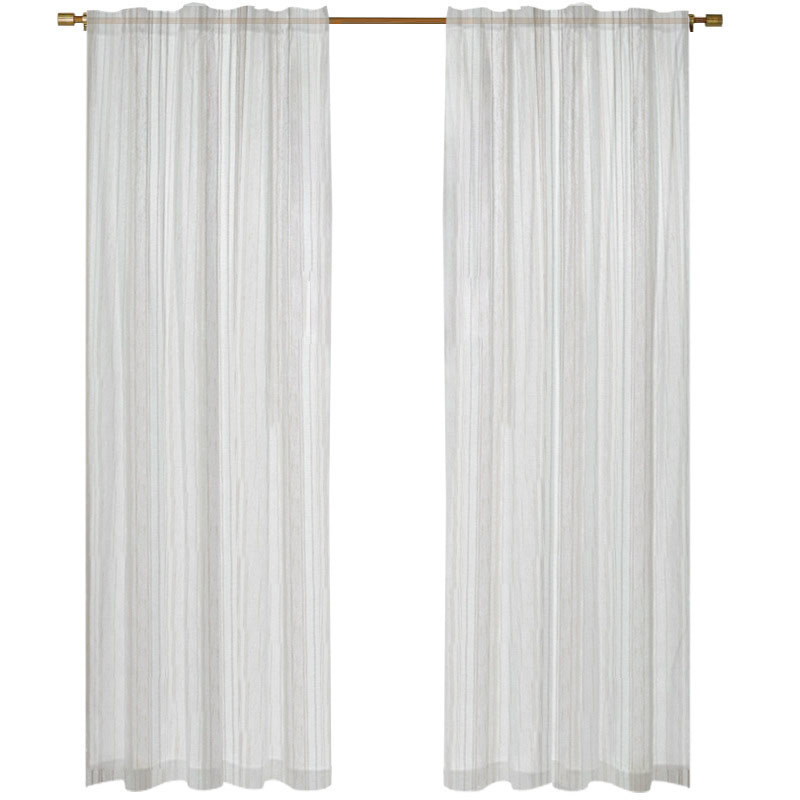Subtle yet stylish, this sheer curtain features soft flocked stripes in natural linen tones, adding texture and depth to the airy white fabric. The vertical pattern creates a light, dimensional effect that beautifully complements modern and minimalist interiors.