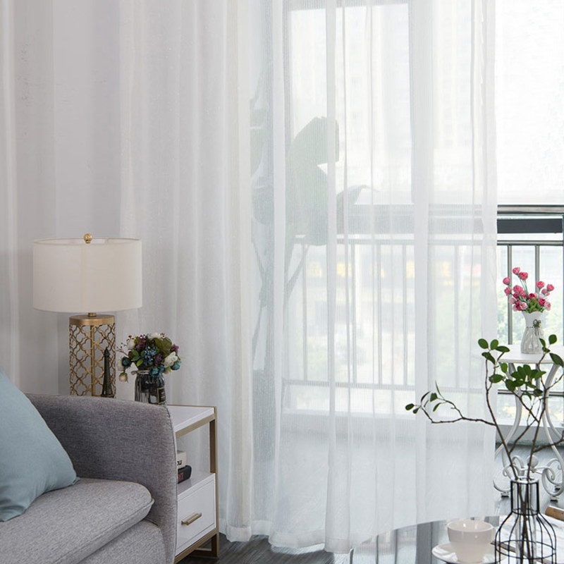 Bring modern glam to your space with this white sheer curtain, featuring delicate glittering stripes that catch the light like twinkling stars.
