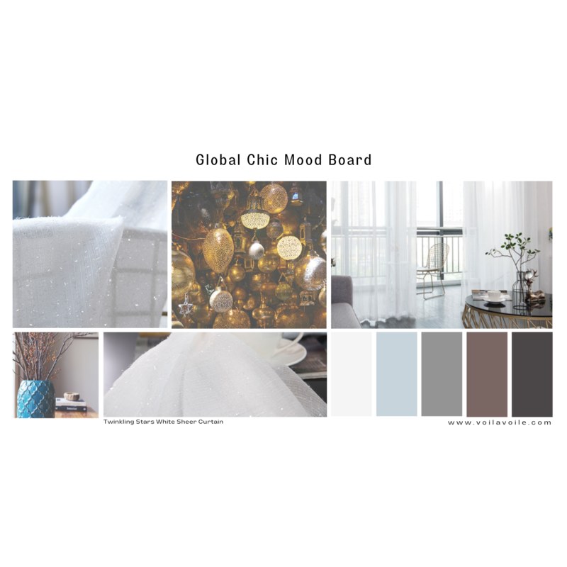 Softly filtering light while preserving privacy, its subtle shimmer enhances contemporary, transitional, or eclectic interiors with a touch of refined glamour.