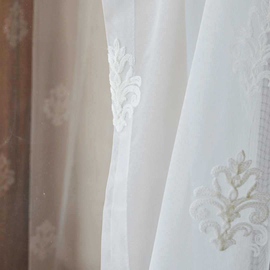 Damask is a timeless pattern. Neoclassical design damask white embroidered sheer curtain is luxurious yet restrained, opulent yet relaxed.