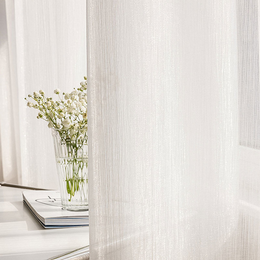 Lightweight organza sheer curtains with a vertical striped weave and subtle shimmer, adding texture and movement to any interior. Softly filtering natural light, they create an airy, elegant ambiance.