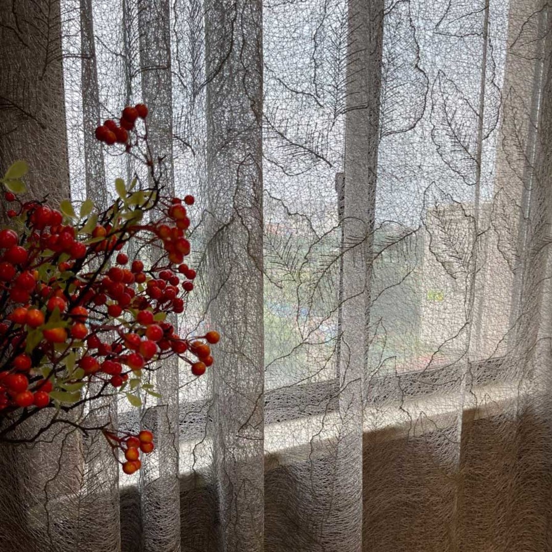 The delicate leaf and line detailing of these stylish gold embroidered meash net curtains bring a piece of contemporary floral art into your home.