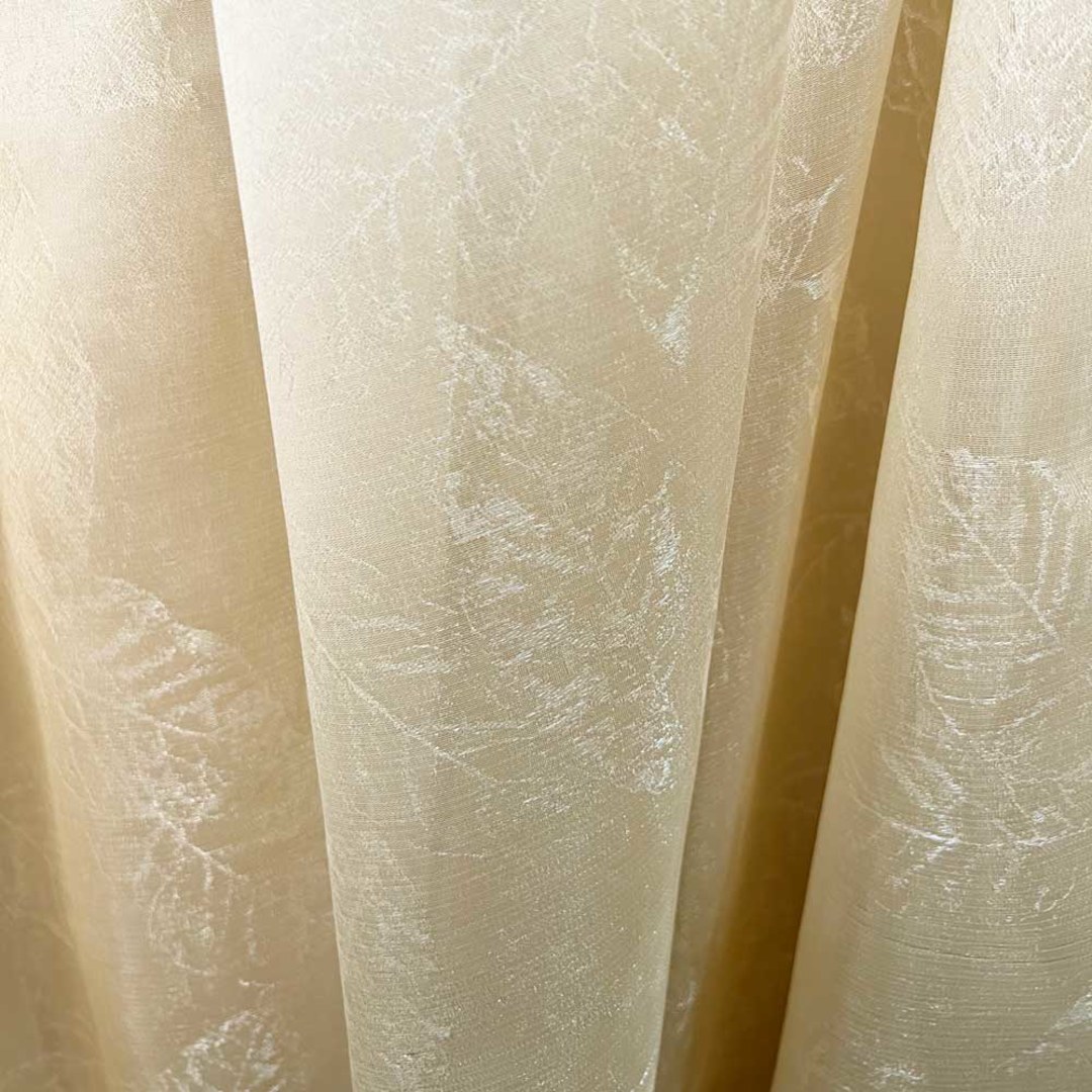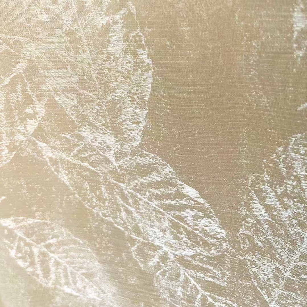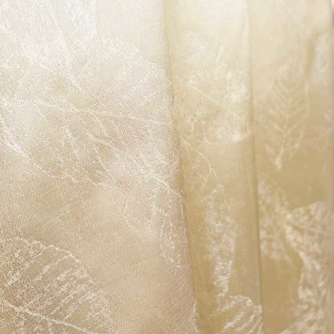The exquisite leaf design radiates a captivating charm, infusing the surroundings with a natural elegance. The Shimmering Leaves sheer curtain allows plenty of light into the room while offering privacy.