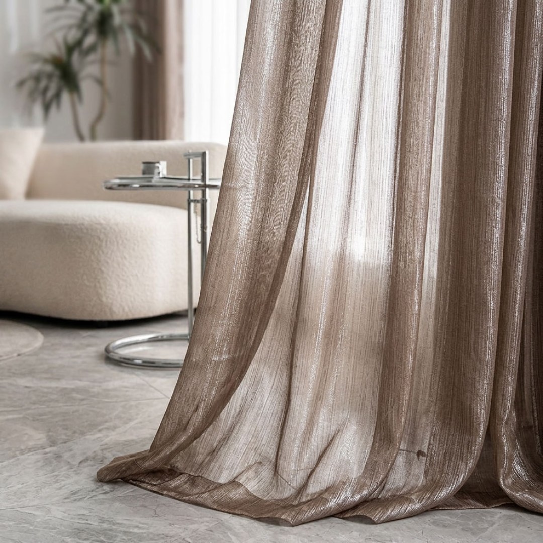 Lightweight organza sheer curtains with a vertical striped weave and subtle shimmer, adding texture and movement to any interior. Softly filtering natural light, they create an airy, elegant ambiance.