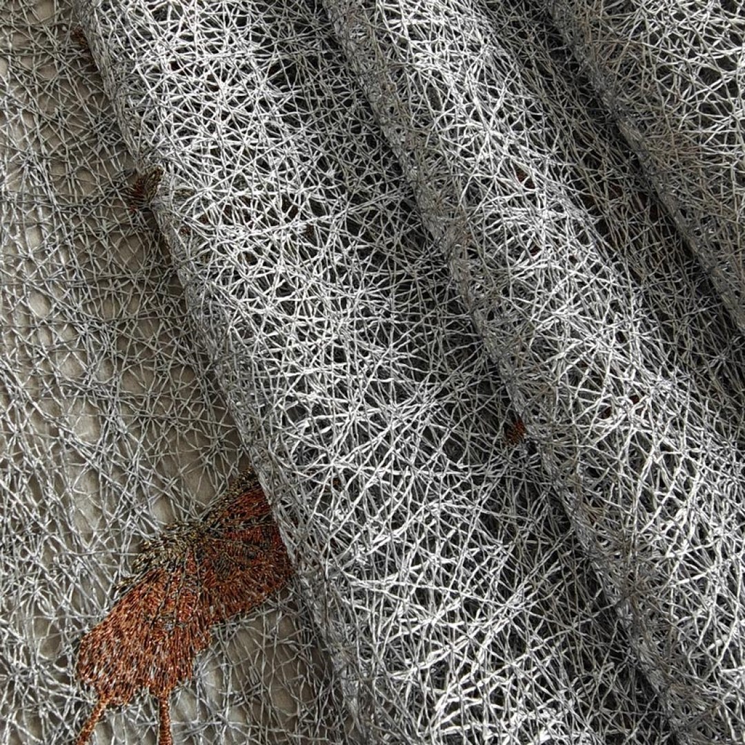 A contemporary mesh net curtain fabric featuring delicately embroidered butterflies with touches of gold glitter. The airy weave and shimmering details bring a whimsical yet elegant charm, perfect for adding light, texture, and a hint of sparkle to modern interiors.