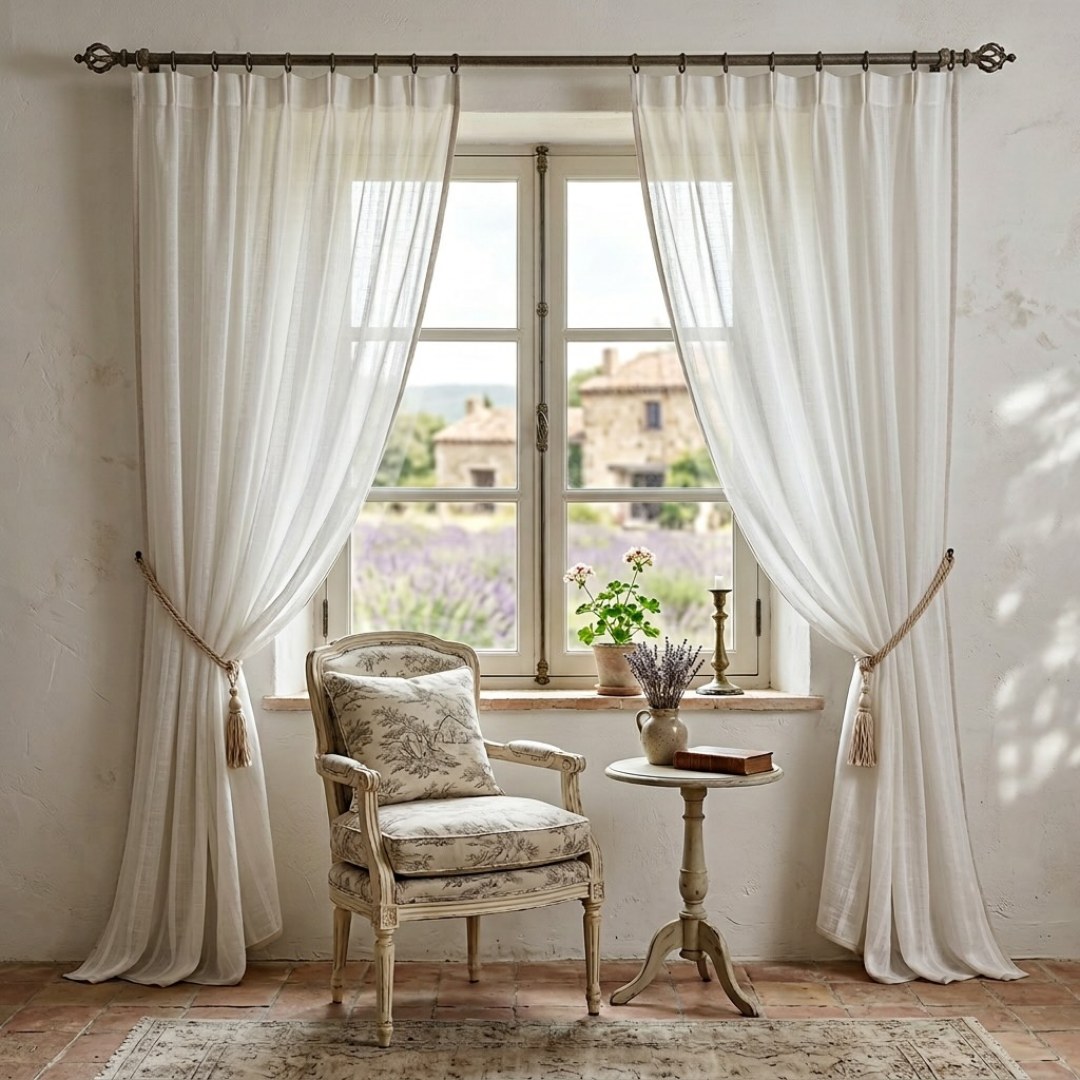 Elevate your windows with the Sunnyside collection, featuring a soft, tactile linen-blend texture and a simple, elegant classic stripe design. These sheer curtains beautifully filter light to create a warm, inviting atmosphere that perfectly complements farmhouse, coastal, Mediterranean, and French country styles. Their gentle drape provides a timeless, organic accent for any room.