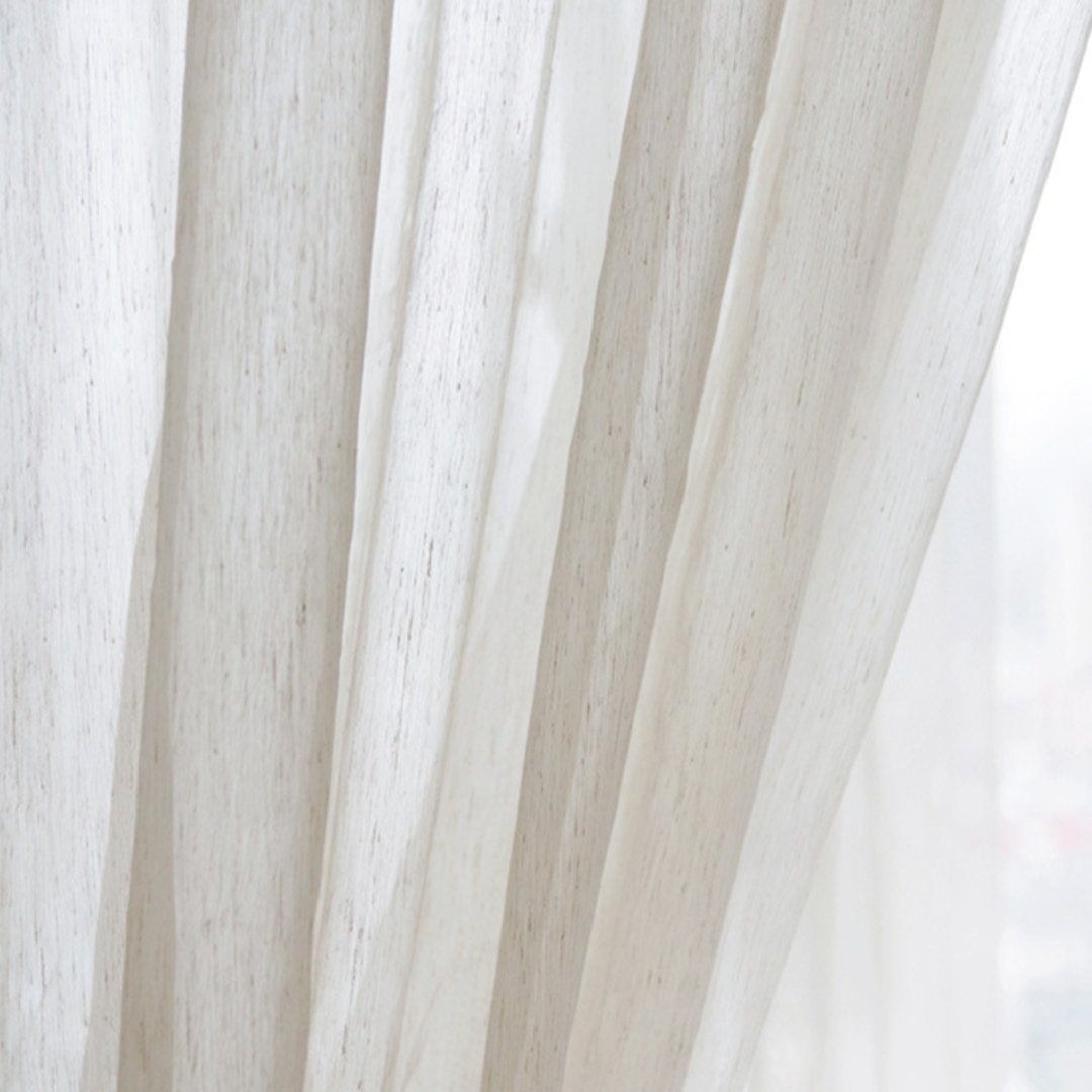Crafted from a balanced cotton linen blend, this sheer curtain offers a harmonious mix of softness and texture. Its natural hue and subtle weave provide a light, airy feel, making it an ideal choice for enhancing the ambiance of your living space.